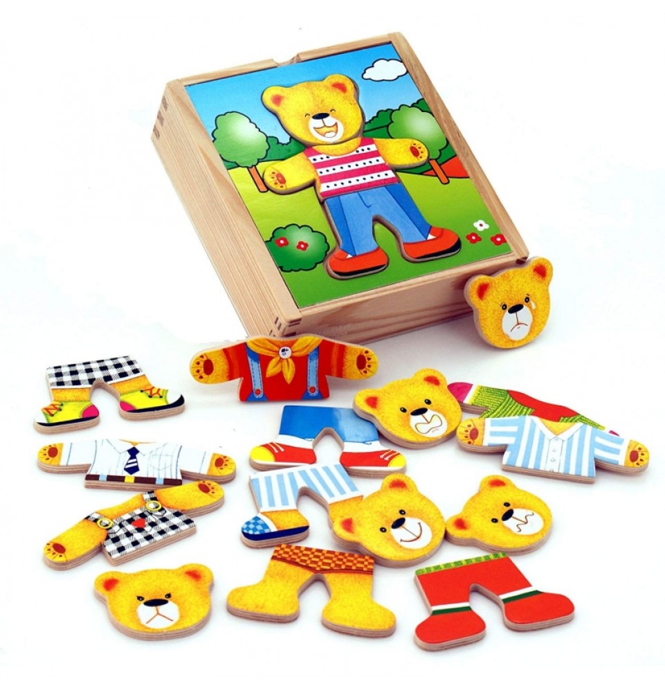VIGA medinė dėlionė Edukacinė dėlionė Aprengti meškiuką berniuką