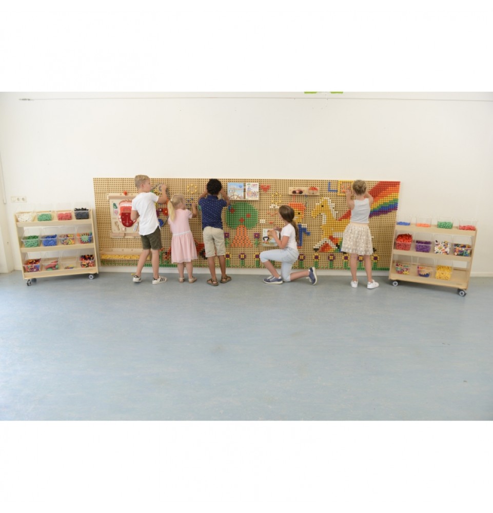 „Masterkidz“ edukacinė STEM sieninė lenta leidžia kūrybiškai žaisti ir tyrinėti mokslo pasaulį. Plačios plokštės, kurių matmenys 120x80 cm (vienos plytelės dydis – 20x20 cm), turi skylutes, į kurias galima įsmeigti spalvingus kaiščius ir sukurti gražius raštus. Prie lentos taip pat galima pritvirtinti įvairias edukacines priemones, krumpliaračius, vamzdžių sistemas su pompa ir kitus įdomius elementus.