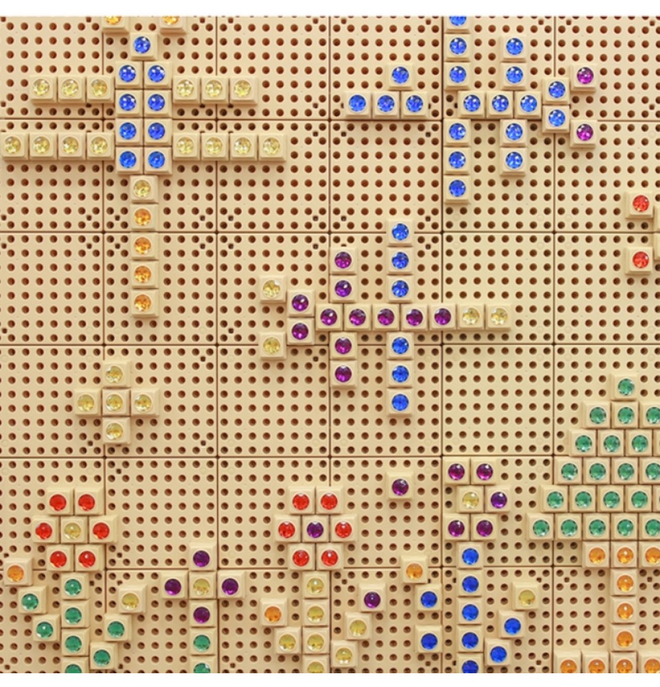 72 rombo formos kaladėlių rinkinys mokslinėms ir kūrybinėms lentoms dekoruoti iš „Masterkidz“ . Kaladėlės yra 6 skirtingų spalvų, po 12 kiekvienos. Jos yra specialiose plokštelėse su kaiščiais, kurie leidžia jas greitai ir lengvai surinkti ir išardyti nuo lentos.