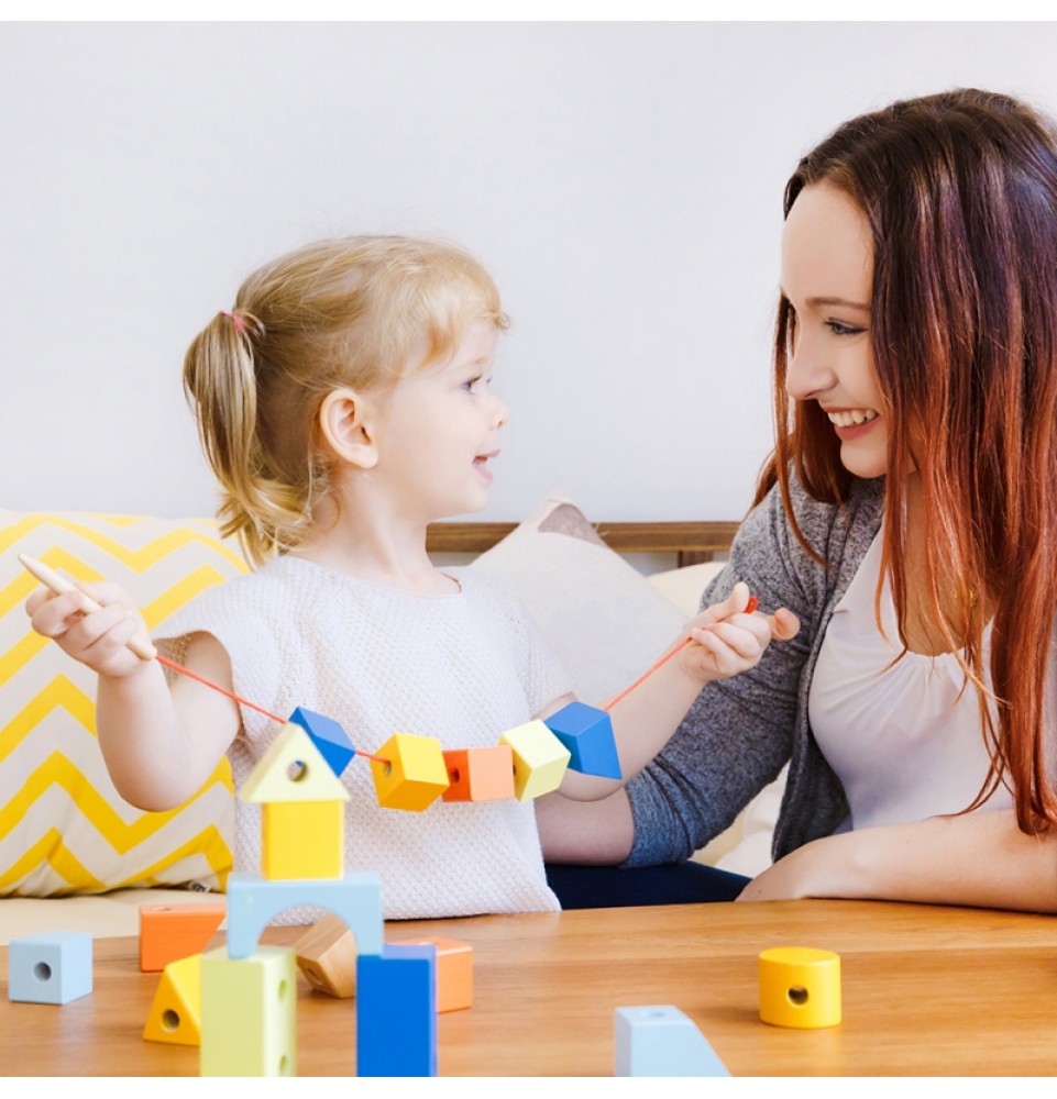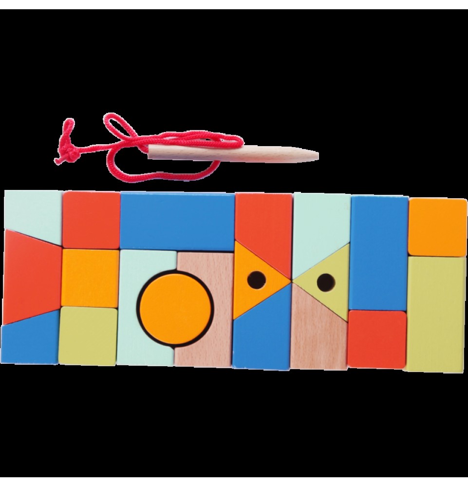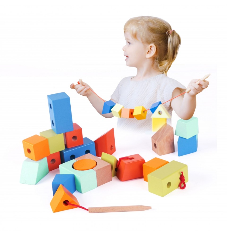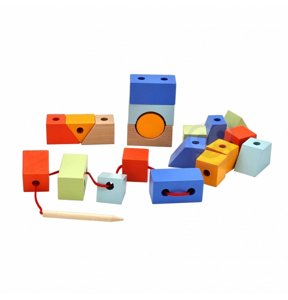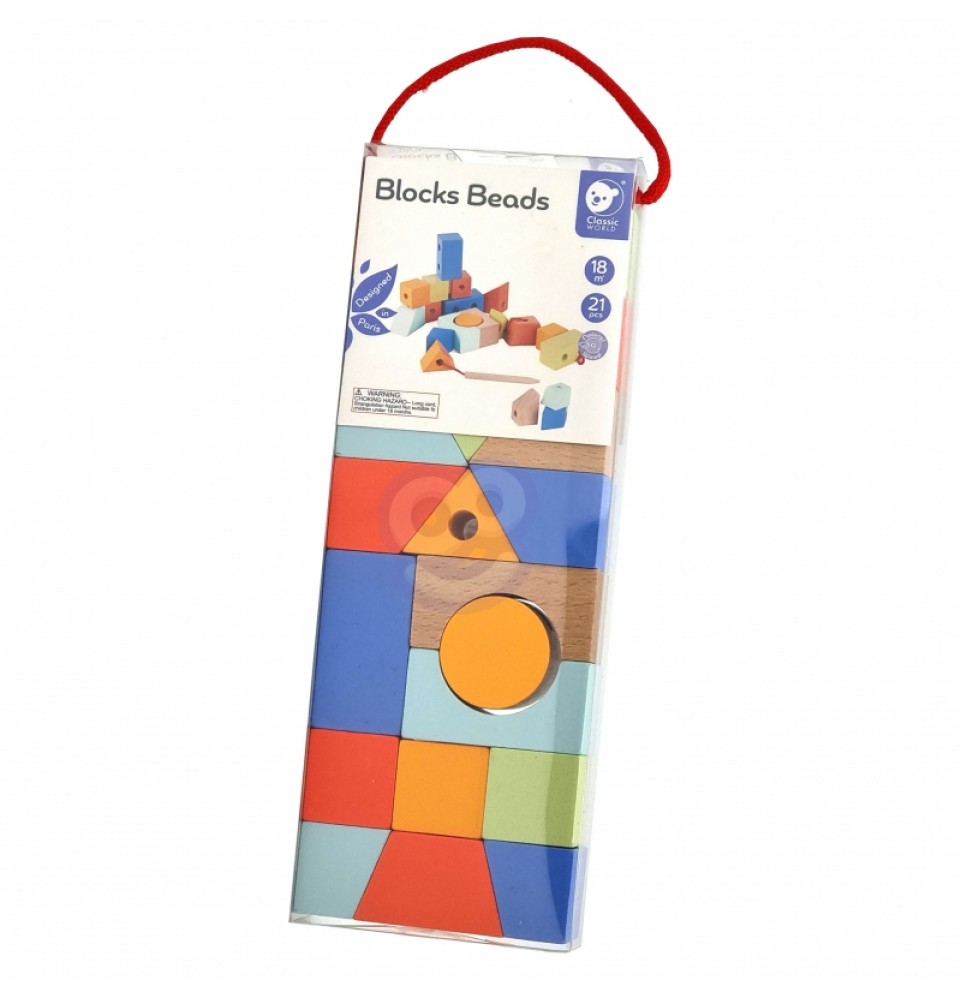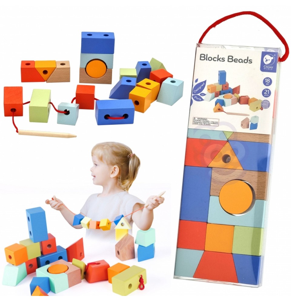CLASSIC WORLD Mediniai siūlų vėrimo kaladėlės, geometrinės figūros, 21 vnt.