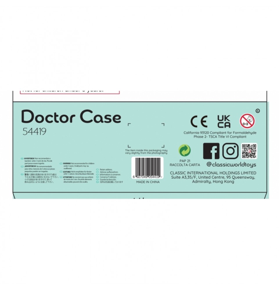 „Classic World“ rinkinyje yra viskas, ko jūsų mažajam gydytojui reikia norint žaisti gydytoju. Būsimi gydytojai ir slaugytojos gali klausytis pacientų (meškiukų, lėlių) širdies plakimo stetoskopu, „matuoti“ jų temperatūrą termometru, „suleisti“ injekcijas ir skirti reikiamus vaistus. Žaidimas su gydytoju yra ne tik vaidmenų žaidimas; jis taip pat lavina empatiją ir atjautą, kurie yra labai svarbūs socialiniams santykiams. Jis skatina vaizduotės vystymąsi ir moko spręsti problemas .