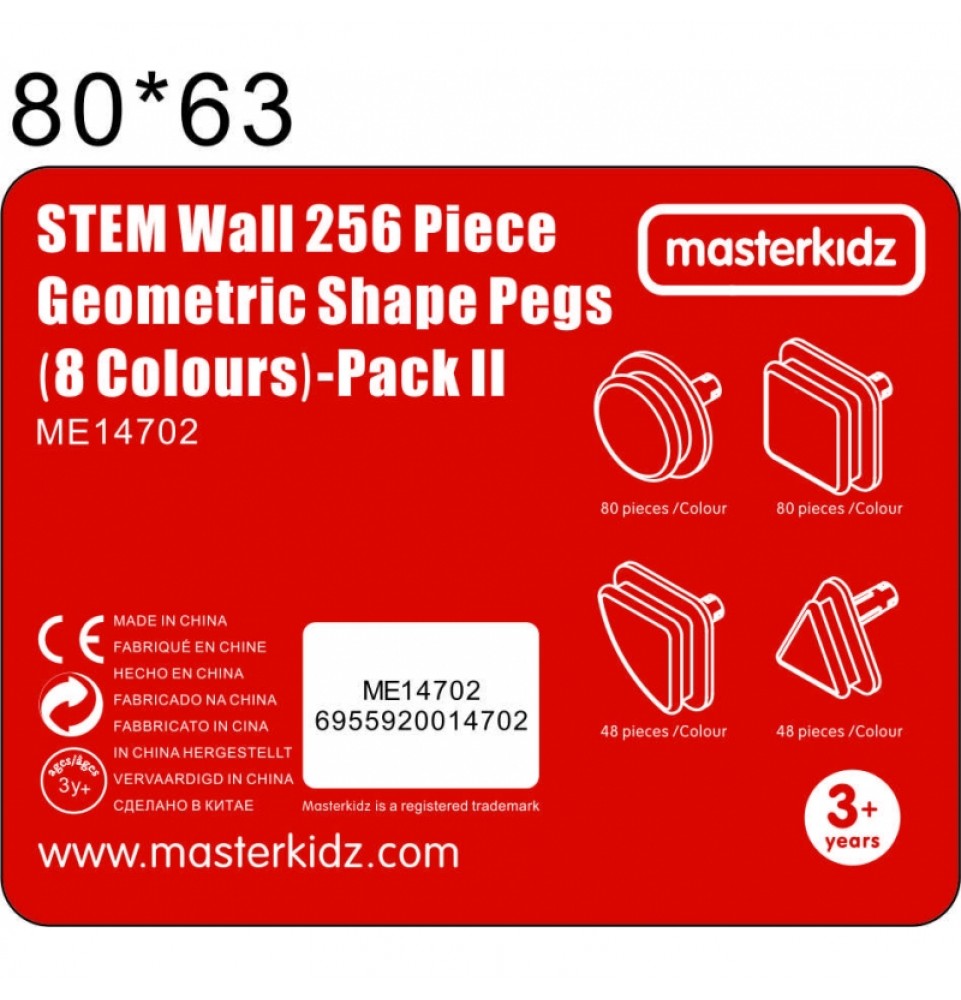 Įvairiaspalviai plastikiniai geometrinių figūrų formos kaiščiai, skirti kurti fantastiškus, pasakiškus raštus. Tai vienas populiariausių „Masterkidz“ kūrybinių lentų priedų. STEM lentos priedų rinkinį sudaro 256 dalys 4 formų ir 8 spalvų, su kuriomis galima sukurti begalę kūrybinių vaizdinių.
