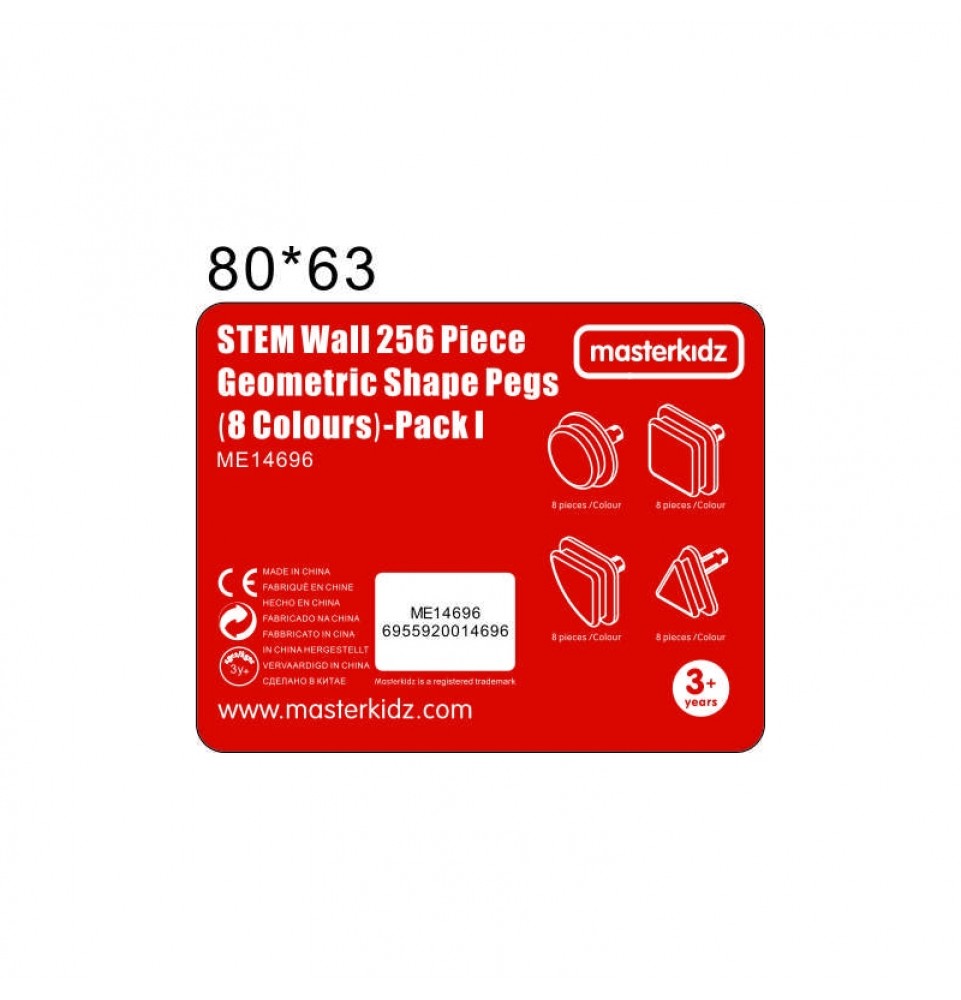 MASTERKIDZ geometriniai elementai, 8 spalvos, 256 vnt. STEM lentos priedų