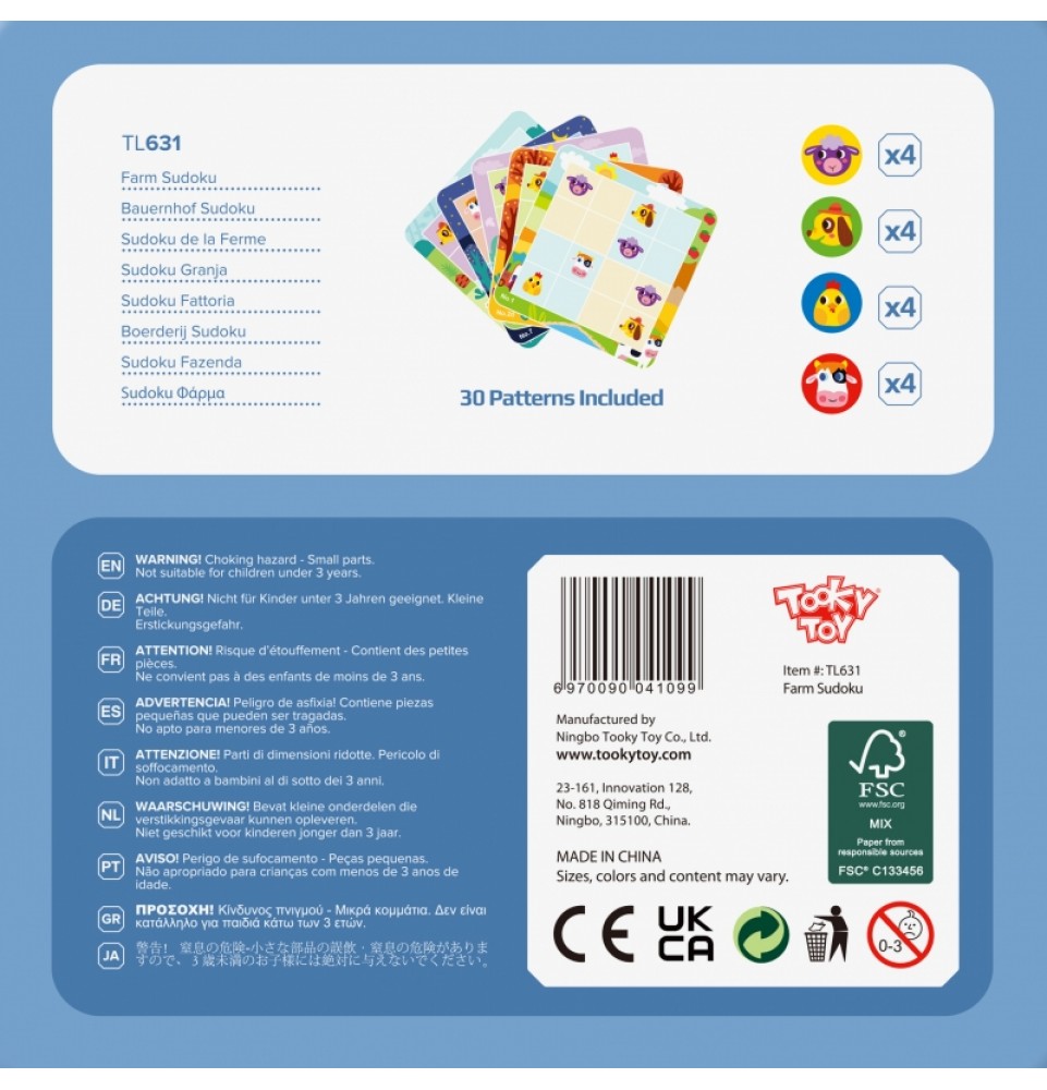 TOOKY TOY Sudoku žaidimas vaikams, skirtas ūkio versijai