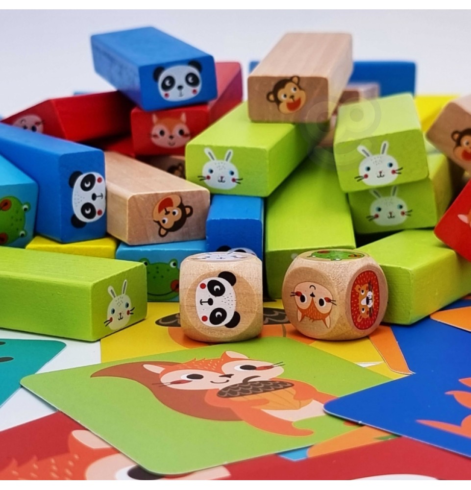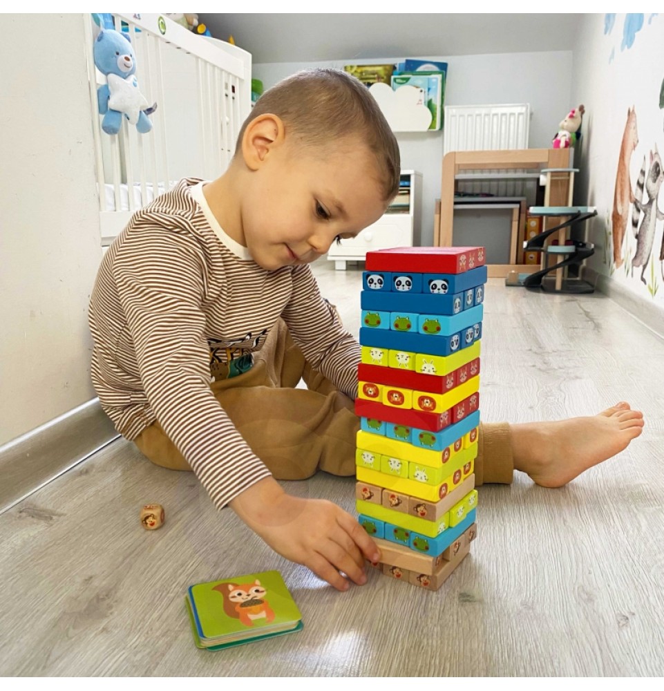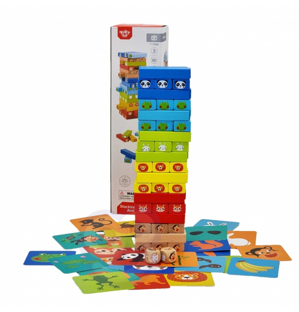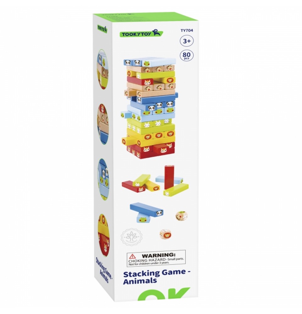 „TOOKY TOY Jenga Animals“ – tai įgūdžių lavinimo žaidimas vaikams nuo 3 metų amžiaus. Jis reikalauja, kad jūsų vaikas susikauptų ir mąstytų logiškai. Rinkinį sudaro 82 detalės. Daugybė išdėstymo variantų užtikrina valandų valandas pramogų. Šis ekologiškas produktas yra 100 % saugus aplinkai ir jūsų mažyliui. Detalės pagamintos galvojant apie mažas vaikų rankeles. Rinkinys patraukia dėmesį ryškiomis spalvomis ir gyvūnų iliustracijomis. Kaladėlės pasižymi tvirta konstrukcija. Nepaisant savo paprastumo, „Jenga“ tikrai suteiks fantastišką patirtį!