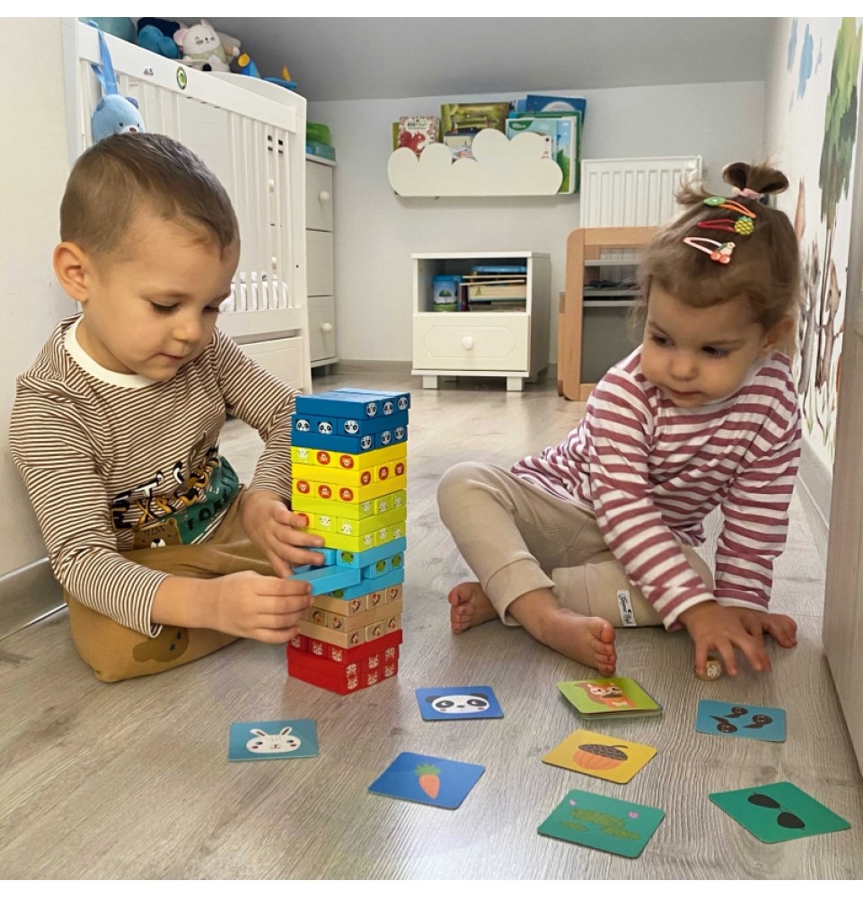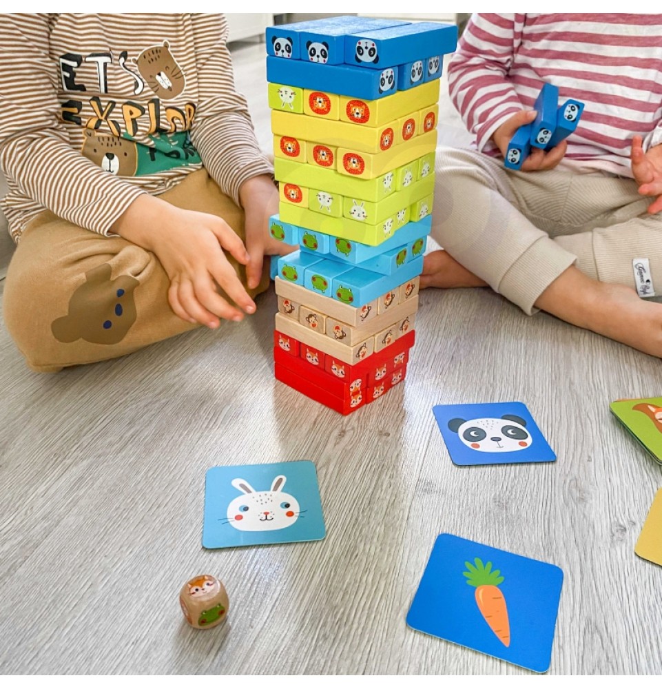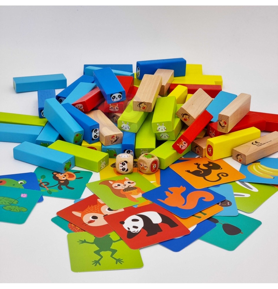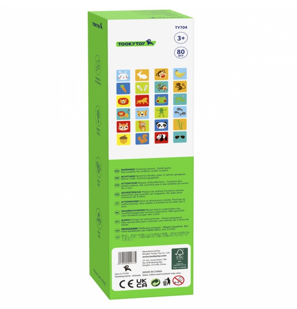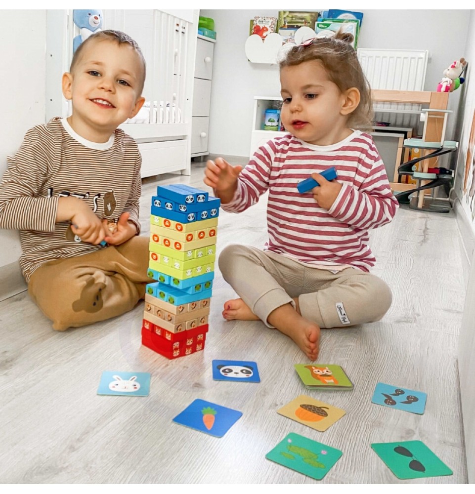 „TOOKY TOY Jenga Animals“ – tai įgūdžių lavinimo žaidimas vaikams nuo 3 metų amžiaus. Jis reikalauja, kad jūsų vaikas susikauptų ir mąstytų logiškai. Rinkinį sudaro 82 detalės. Daugybė išdėstymo variantų užtikrina valandų valandas pramogų. Šis ekologiškas produktas yra 100 % saugus aplinkai ir jūsų mažyliui. Detalės pagamintos galvojant apie mažas vaikų rankeles. Rinkinys patraukia dėmesį ryškiomis spalvomis ir gyvūnų iliustracijomis. Kaladėlės pasižymi tvirta konstrukcija. Nepaisant savo paprastumo, „Jenga“ tikrai suteiks fantastišką patirtį!
