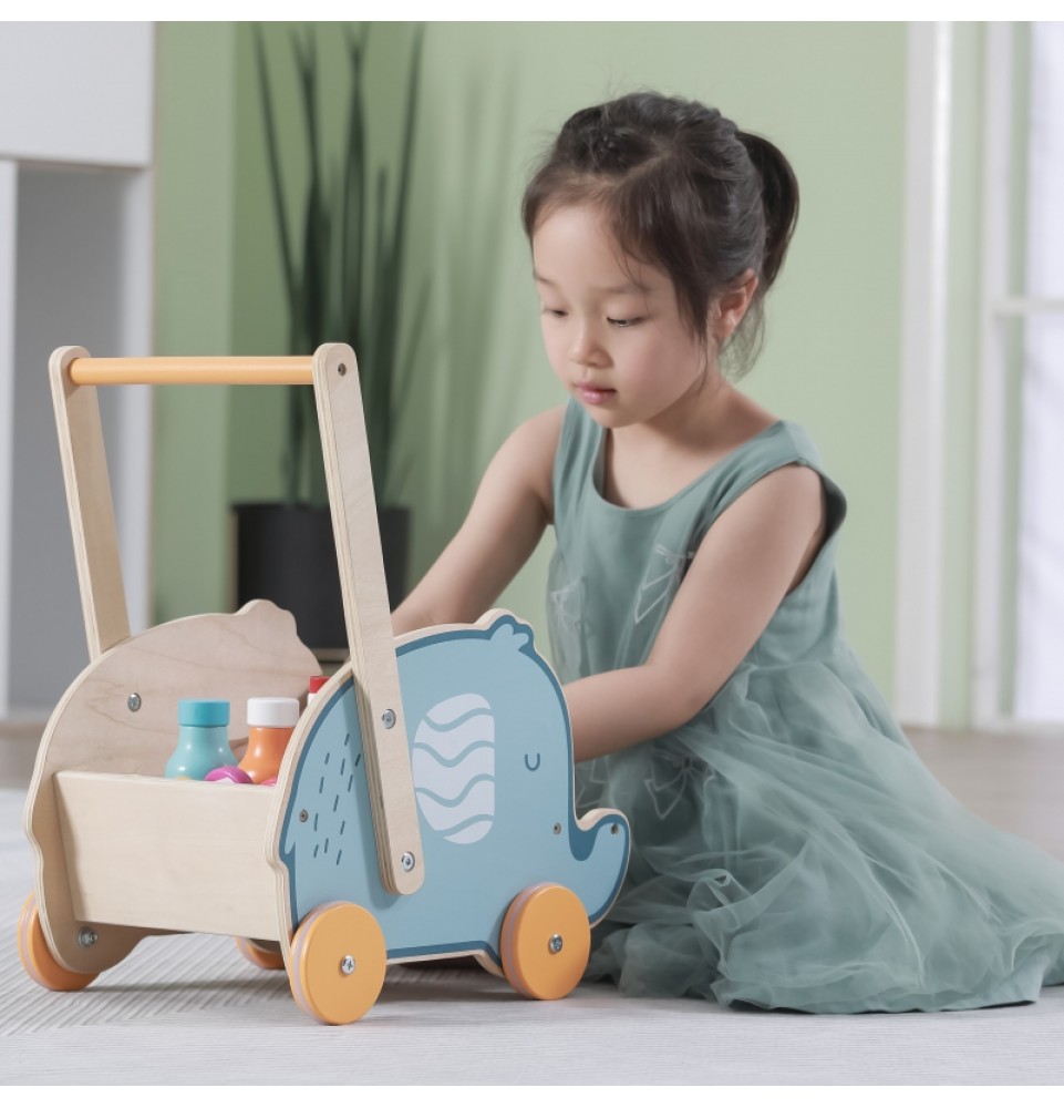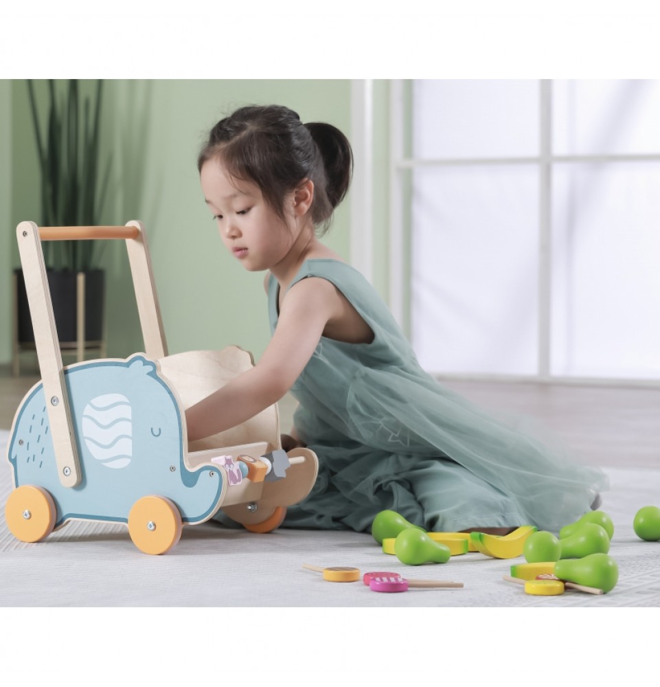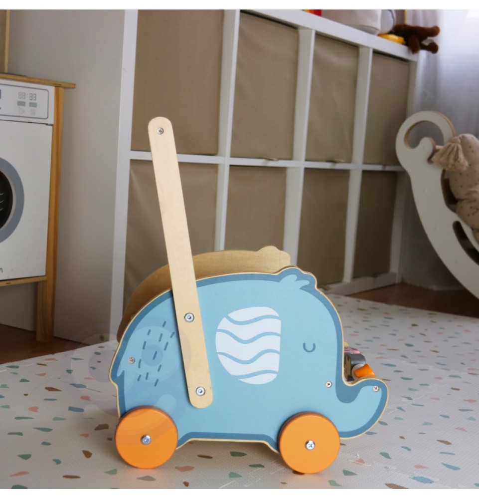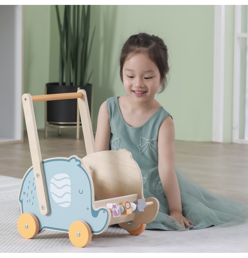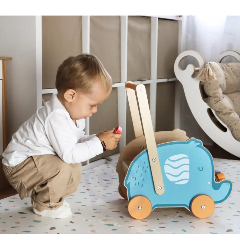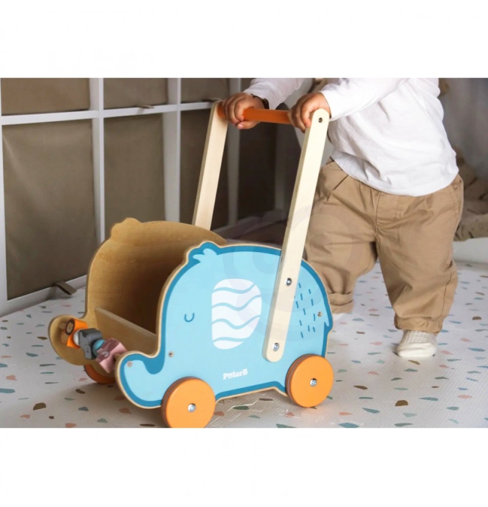 VIGA PolarB medinis 2 viename vežimėlis, vaikštynė, dramblys