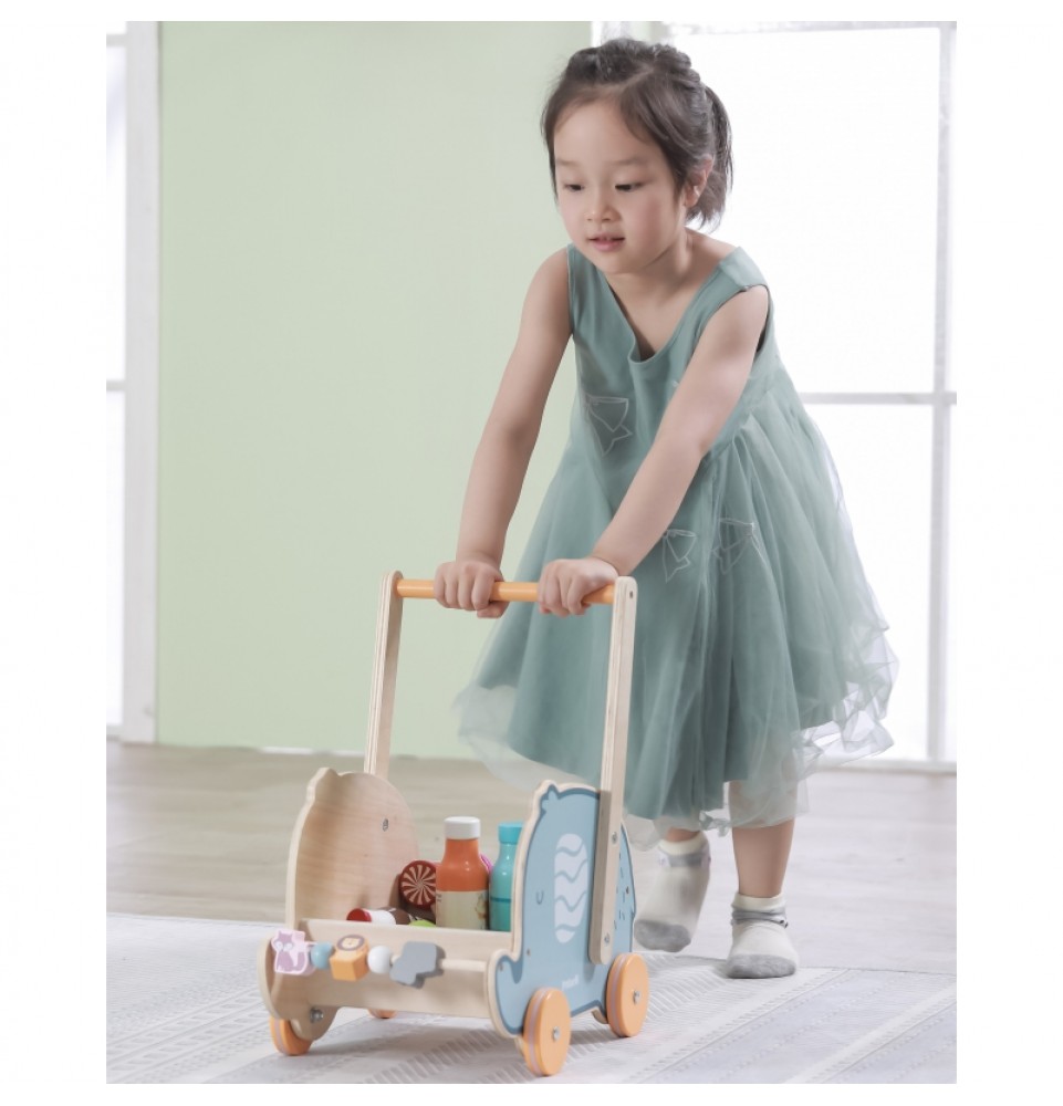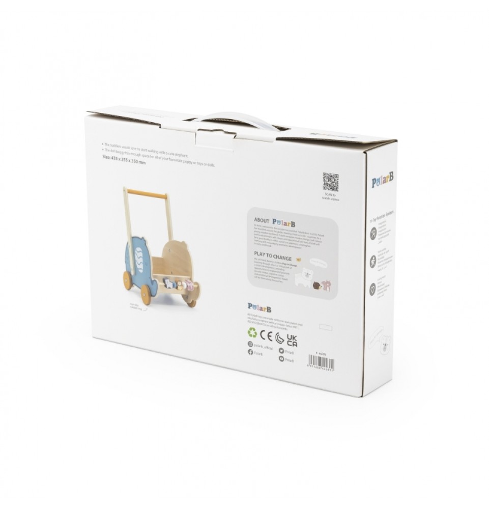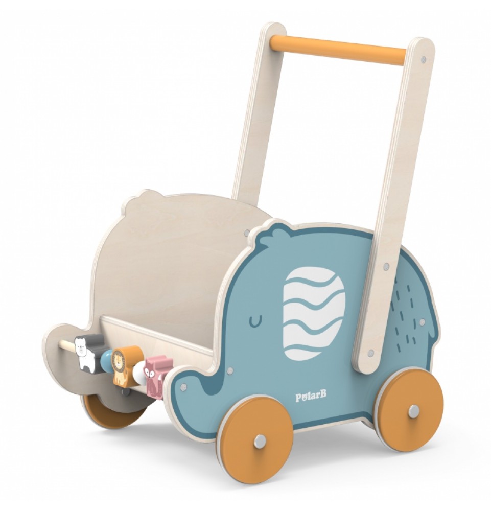 „Viga Toys“ medinių žaislų serija „PolarB“ puikiai padeda lavinti stambiąją ir smulkiąją motoriką . Vaikštynės yra vieni populiariausių žaislų vaikams, kurie tik pradeda žengti pirmuosius žingsnius. Vaikščioti su vaikštyne – tikras malonumas, padedantis išlaikyti pusiausvyrą ir tobulinti ėjimo įgūdžius. Vežimėlio ratukai turi gumines dangas, kurios slopina triukšmą ir yra neslystančios. Visas komplektas pagamintas iš aukščiausios kokybės buko medienos. Šis žaislas puikiai derina vaikštynės ir vežimėlio funkcijas.