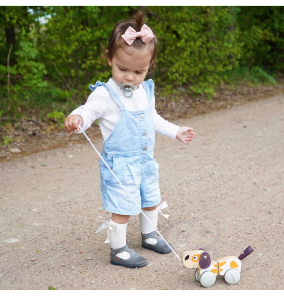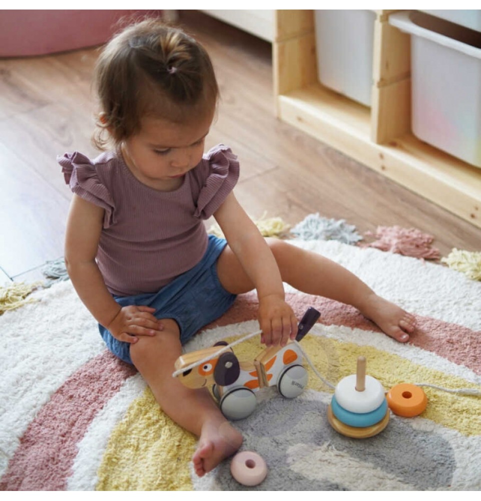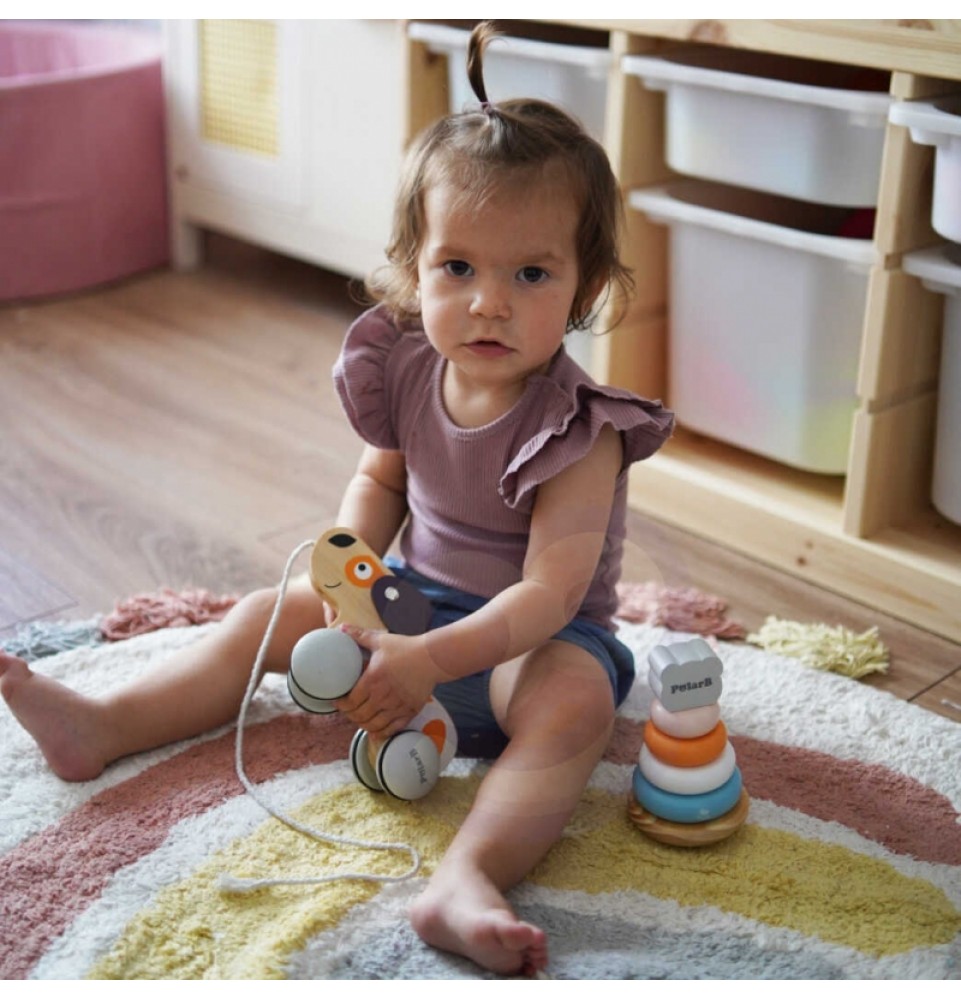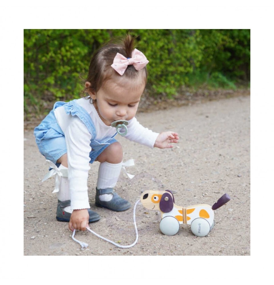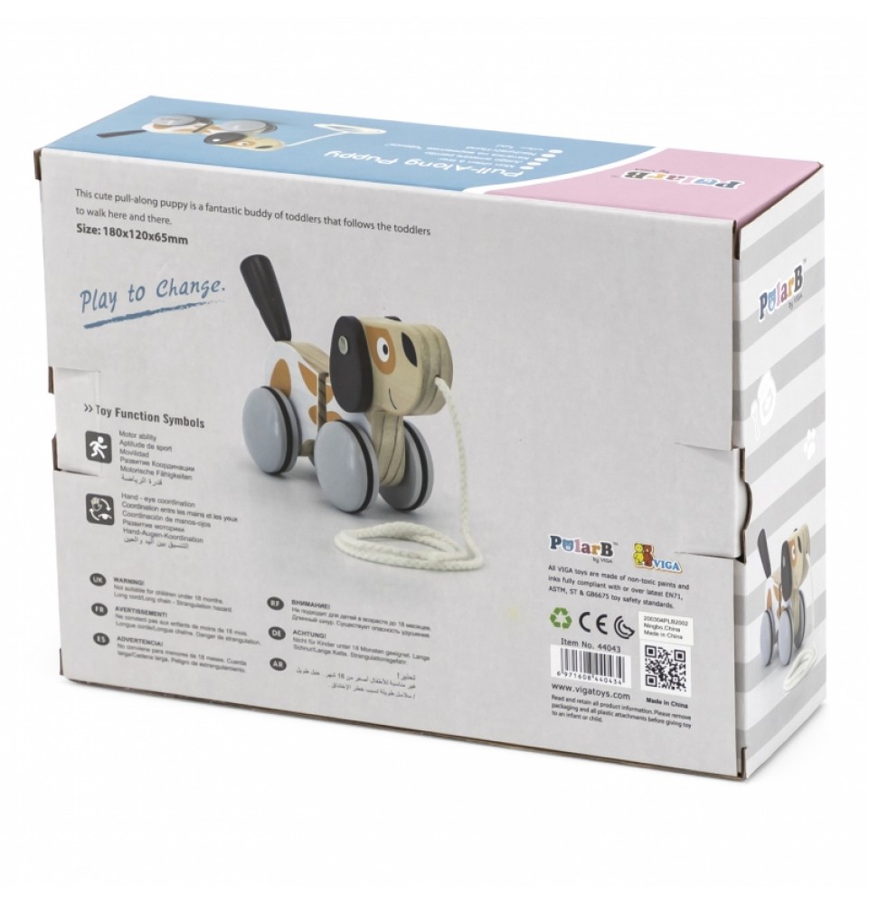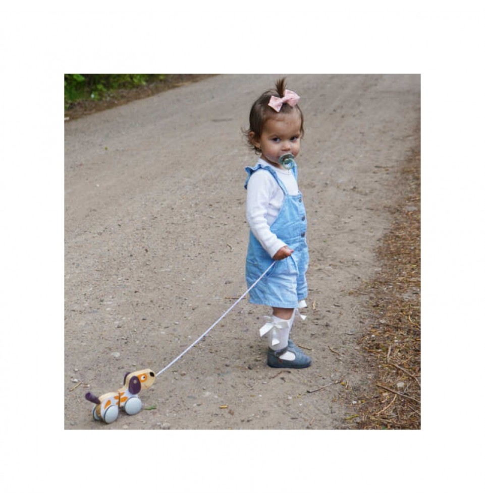 „Viga Toys“ medinis šuo ant virvės „Poliar“ – puikus būdas paskatinti vaikus, kurie tik pradeda žengti pirmuosius žingsnius, vaikščioti . Madingos, prislopintos spalvos puikiai papildys bet kurią žaislų kolekciją.