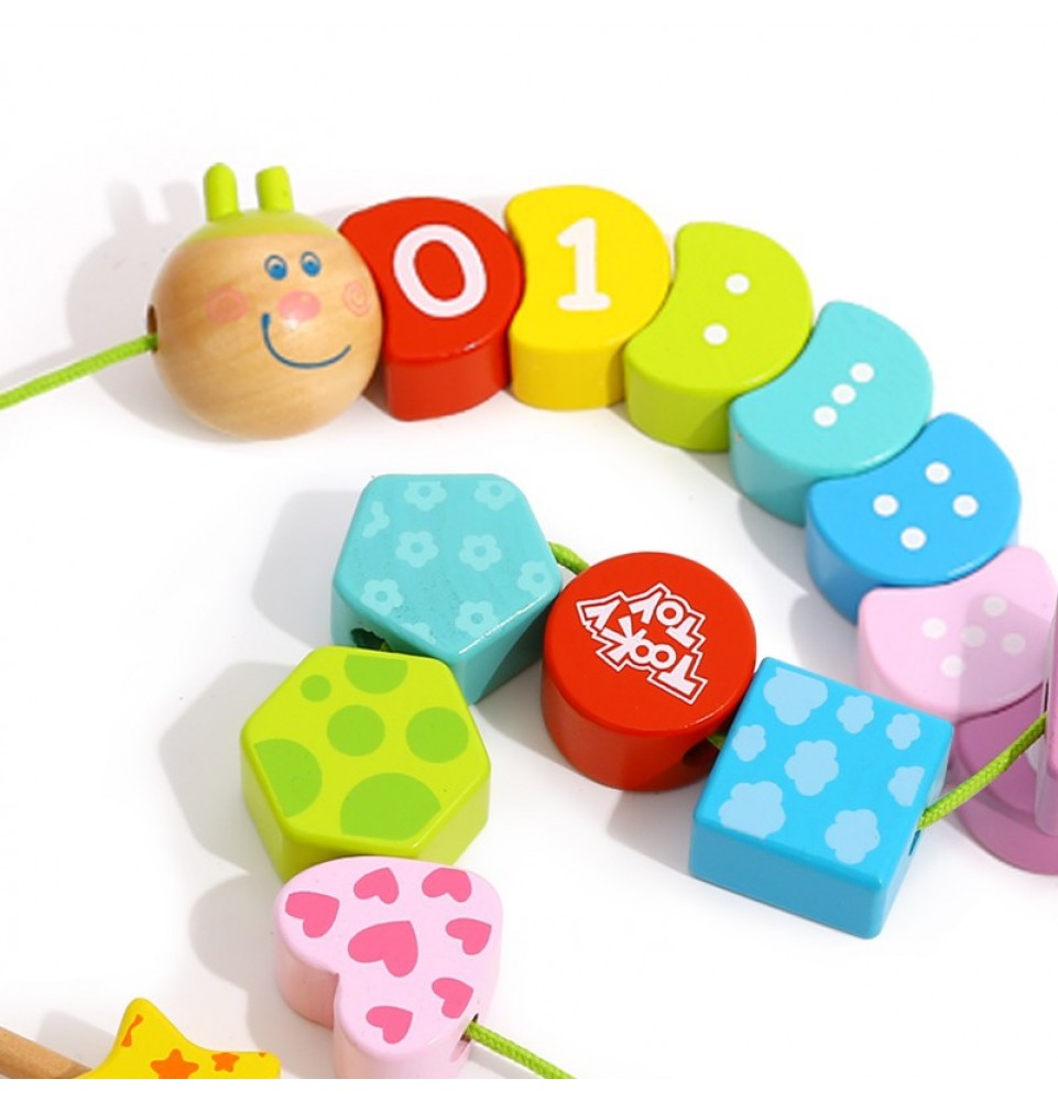 „TOOKY TOY“ suvarstomas vikšras yra medinis žaislas vaikams, leidžiantis jiems sukurti žavų, spalvingą vikšrą su ryškiu, besišypsančiu veidu. Tai puikus žaidimas lavinti smulkiąją motoriką , būtiną ankstyvajam vystymuisi. Šis žaislas suteiks valandų valandas pramogos, kol vaikai vers siūlus per skylutes. Kiekviena detalė pagaminta iš aukštos kokybės medienos ir dažyta netoksiškais dažais. Siūlų vėrimas ir raištelių vėrimas lavina mažųjų pirštų koordinaciją ir kantrybę . Šis medinis lavinamasis žaislas siūlo daug galimybių, pavyzdžiui, skaičių vėrimą teisinga didėjančia arba mažėjančia tvarka, tik lyginių skaičių vėrimą ir spalvų bei formų atpažinimą. Dėl aštrių briaunų nebuvimo šis gaminys yra 100 % saugus vaikams.
