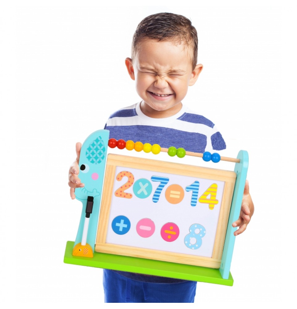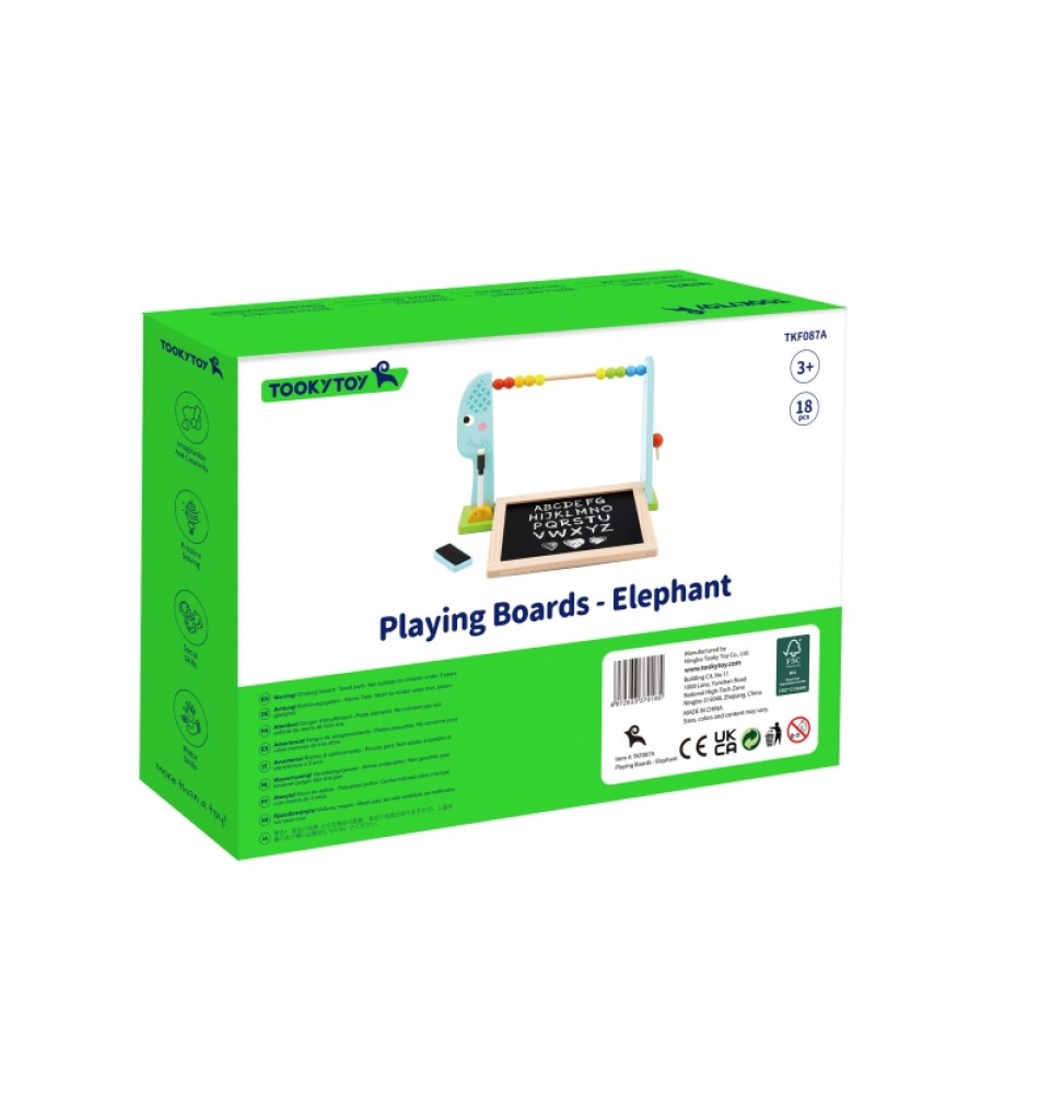 „TOOKY TOY“ stovintis dramblys su karoliukais yra dvipusė lenta su mini abaku. Pagaminta iš patvarios , storos medienos , ši lenta linksmina ir lavina! Spalvingi elementai sužavės bet kurį vaiką ir garantuos valandų valandas pramogų. Žaislas neturi aštrių briaunų ir yra gerai nupoliruotas, todėl yra saugus jūsų mažylio rankytėms. Jis lavina smulkiąją motoriką, skatina vaizduotę ir lavina akių bei rankų koordinaciją . Jūsų vaikas gali praktikuotis mokytis skaičių ir lavinti meninius įgūdžius. Ši lenta yra būtina jūsų vaiko kambaryje.