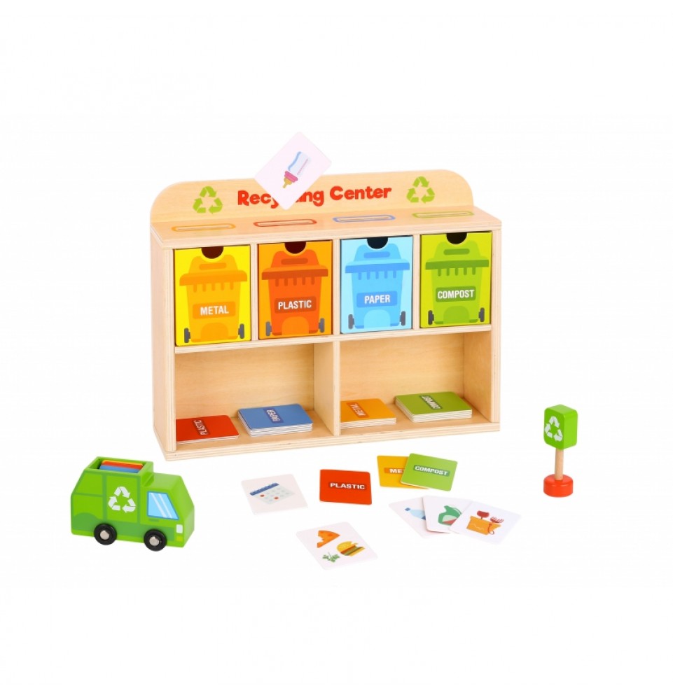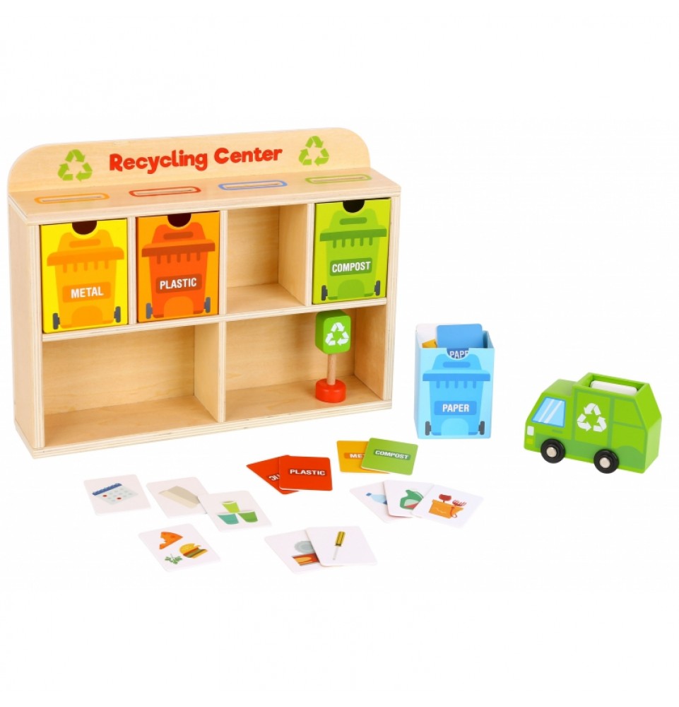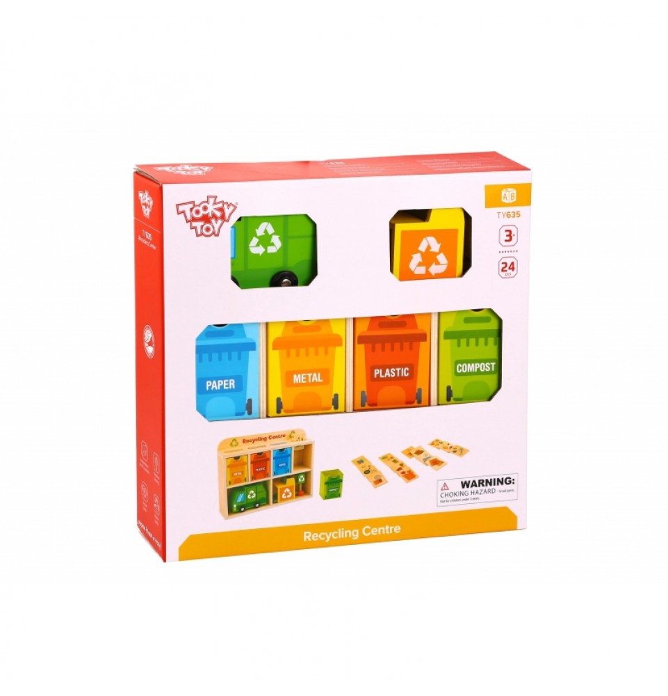 Prisidėkime prie mūsų planetos išsaugojimo ! Svarbu mokyti vaikus gerų įpročių nuo mažens, todėl atraskite atliekų rūšiavimo pasaulį su „Tooky“ žaislų perdirbimo centru . Žaidimas apima atliekų rūšiavimą naudojant korteles , vaizduojančias atliekas, pagamintas iš skirtingų medžiagų. Kortelė su paveikslėliu metama į šiukšliavežę , tada į rūšiavimo mašiną ir galiausiai į atitinkamą konteinerį , pastatytą ant specialios medinės spintelės , atsižvelgiant į paveikslėlyje esančio daikto medžiagą.