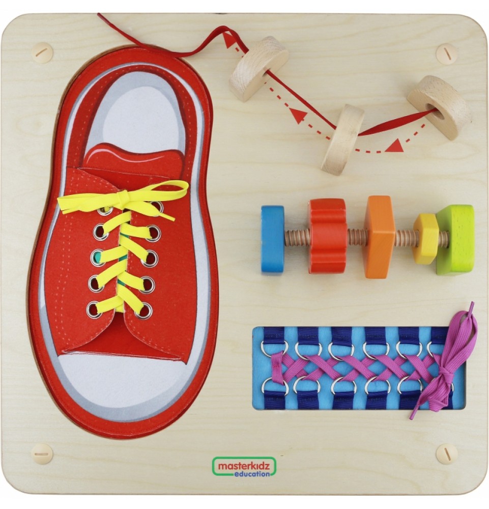 MASTERKIDZ lavinamoji lenta – rankų miklumo lavinimas Montessori raišteliais