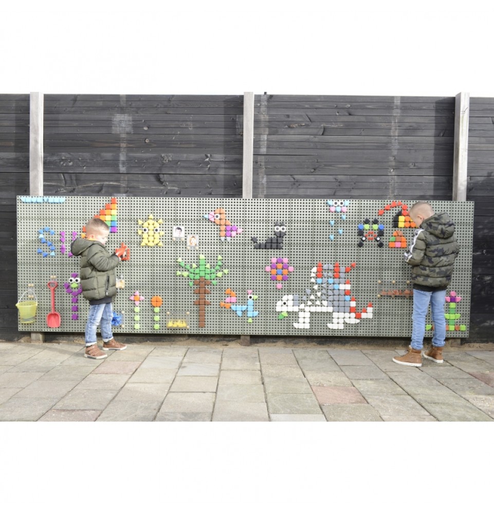 „Masterkidz“ edukacinė STEM sieninė lenta leidžia kūrybiškai žaisti ir tyrinėti mokslo pasaulį. Plačios plokštės, kurių matmenys 120x80 cm (vienos plytelės dydis – 20x20 cm), turi skylutes, į kurias galima įsmeigti spalvingus kaiščius ir sukurti gražius raštus. Prie lentos taip pat galima pritvirtinti įvairias edukacines priemones, krumpliaračius, vamzdžių sistemas su pompa ir kitus įdomius elementus.