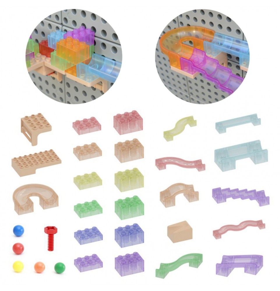 MASTERKIDZ kamuoliukų bėgimo trasos konstruktoriaus rinkinys STEM lenta 120 detalių