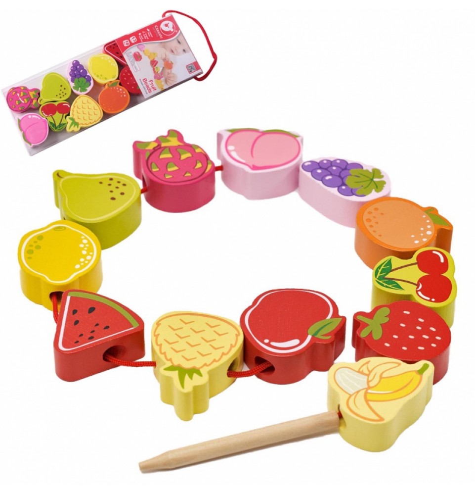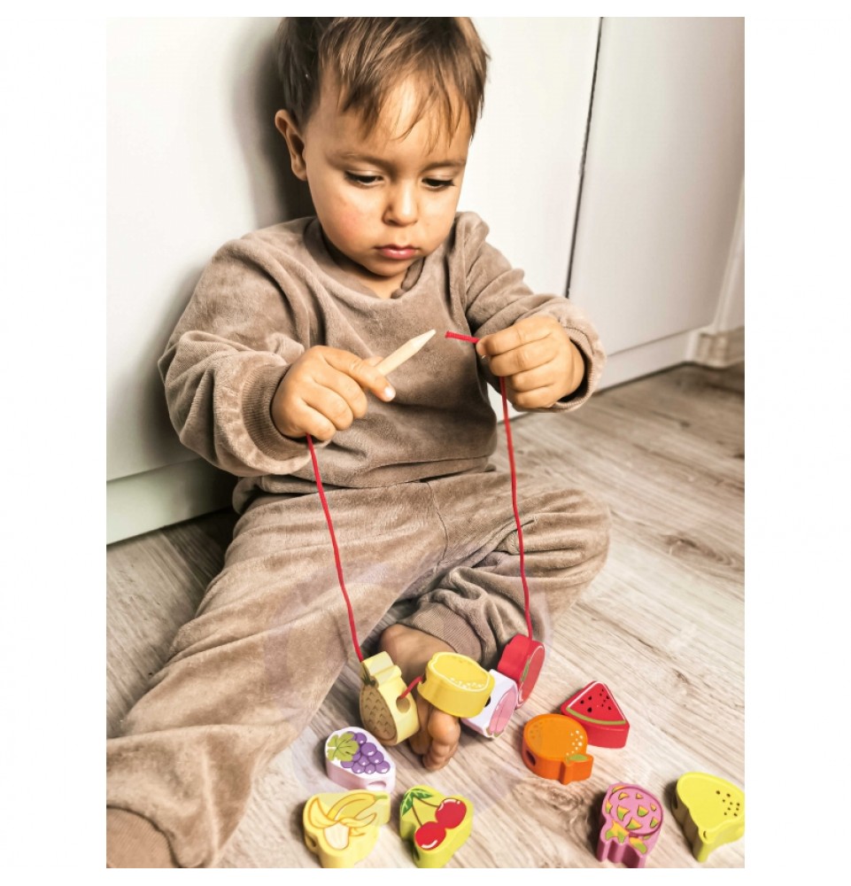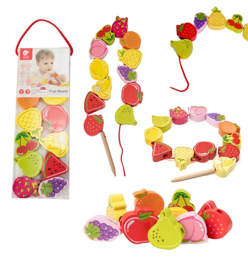 Šis medinis garsaus prekės ženklo „Classic World“ vaisių siūlo vėrimo žaislas yra puikus žaislas jūsų jauniausiems tyrinėtojams. Rinkinį sudaro 12 medinių vaisių formos kaladėlių, kurios medine adata suveriamos ant siūlo. Šis žaislas padės jūsų vaikui lavinti smulkiąją motoriką ir praplės vaizduotę. Jis taip pat skirtas išmokyti vaikus vaisių pavadinimų ir jų spalvų. Šis rinkinys sužadins jūsų mažylio smalsumą ir suteiks valandų valandas pramogų – kaladėles galima išdėlioti bet kokiu jiems patinkančiu būdu.