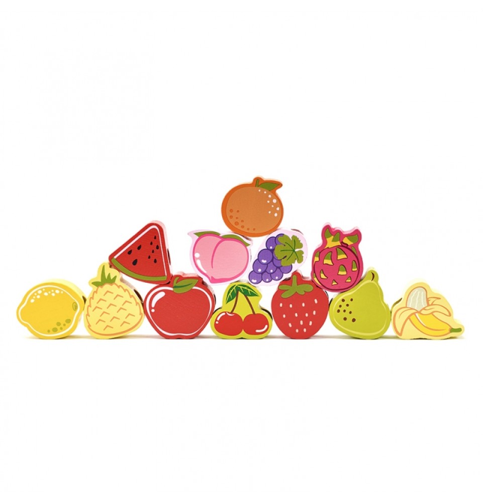 CLASSIC WORLD Mediniai siūlų vėrimo kaladėlės Vaisiai 13 vnt.