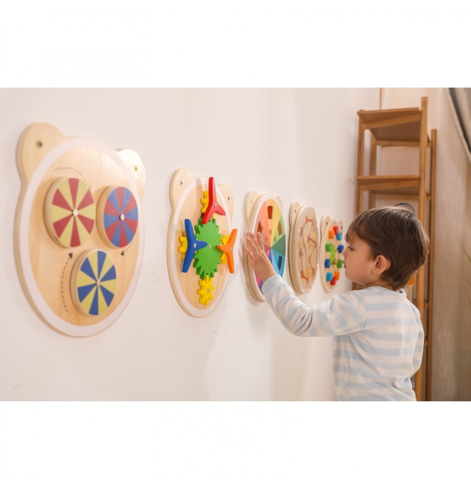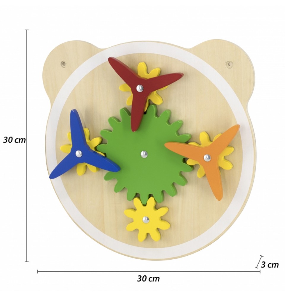 Viena iš medinių lentelių su žavinga meškiuko galva serijos. Lenta turi penkis krumpliaračius ir tris krumpliaračius, išdėstytus taip, kad sukant vieną krumpliaratį, galima pajudinti kitus. Šis žaislas padeda lavinti vaikų loginį mąstymą ir mokyti atpažinti spalvas . Šis gaminys puikiai tinka tiek namams, tiek ikimokyklinio ugdymo aplinkai. Įdomus lentos dizainas tikrai pritrauks kiekvieno vaiko dėmesį. Visa lenta pagaminta iš lakuotos medienos ir dažyta netoksiškais ryškių spalvų dažais, kurie pradžiugins kiekvieną naudotoją ir suteiks daug džiaugsmo. Šis gaminys tinka vaikams nuo 18 mėnesių amžiaus. Galima įsigyti visą mūsų meškiuko galvūgalių lentelių seriją.
