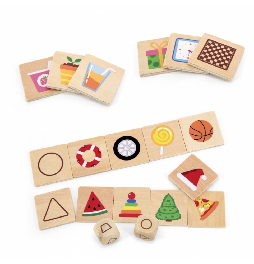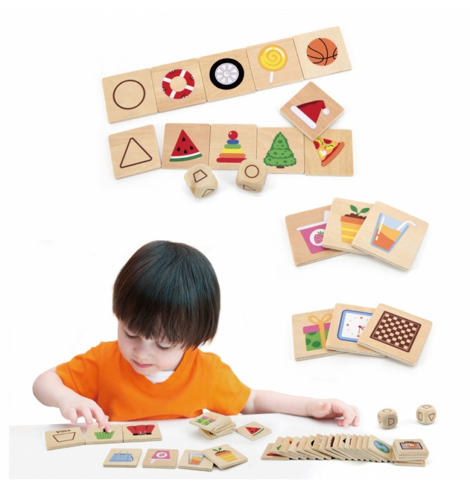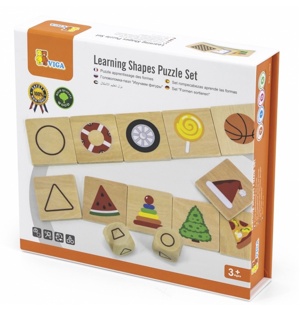 Medinė dėlionė formų mokymuisi ir rūšiavimui . Vaiko užduotis – susieti objektus su pasirinktomis figūromis. Paveikslėliuose pavaizduota daug kasdienių daiktų, pavyzdžiui, gėlių vazonas ir picos gabalėlis. Žiūrėdamas į gėlių vazoną, vaikas matys trapecijos formą, o picos gabalėlis – trikampį. Visa dėlionė pagaminta iš medžio ir dažyta netoksiškais dažais. Pridedamose instrukcijose siūlomi variantai vienam ar keliems žaidėjams ir skirtingiems sudėtingumo lygiams.