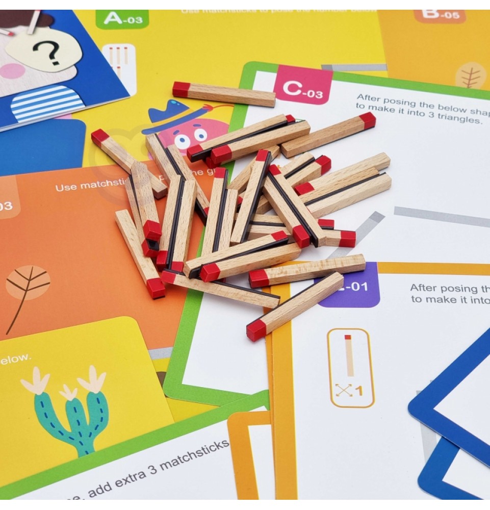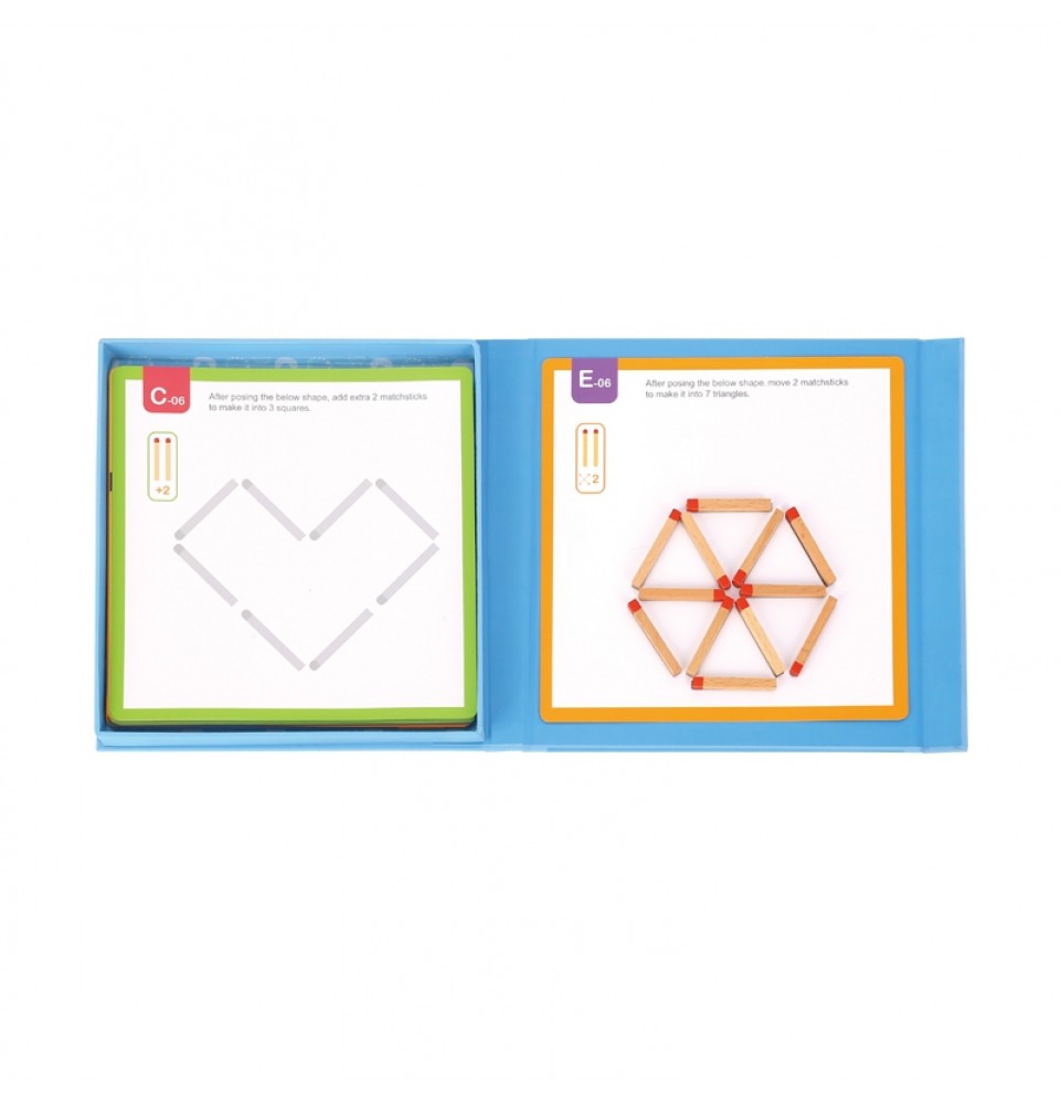 Žaidimas susideda iš degtukų dėliojimo pagal tam tikrą raštą. Vadovaukitės puslapyje pateiktomis instrukcijomis, kuriose nurodoma, ką toliau daryti su dėlione. Pavyzdžiui, sukurkite formą iš 6 trikampių, tada perkelkite 2 degtukų pagaliukus, kad sukurtumėte 7 trikampius. Šis žaidimas puikiai tinka lavinti vaikų kūrybiškumą, vaizduotę ir loginį mąstymą .