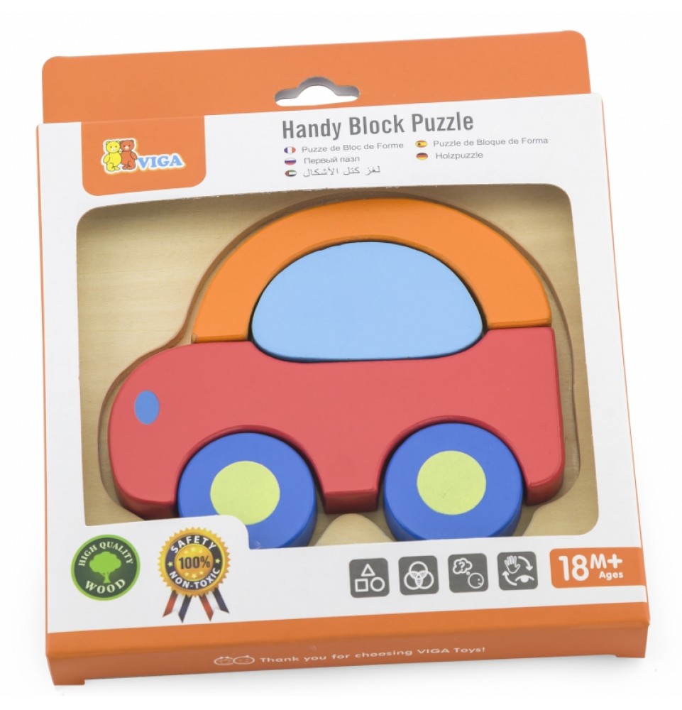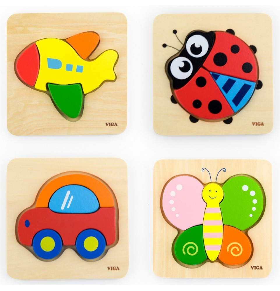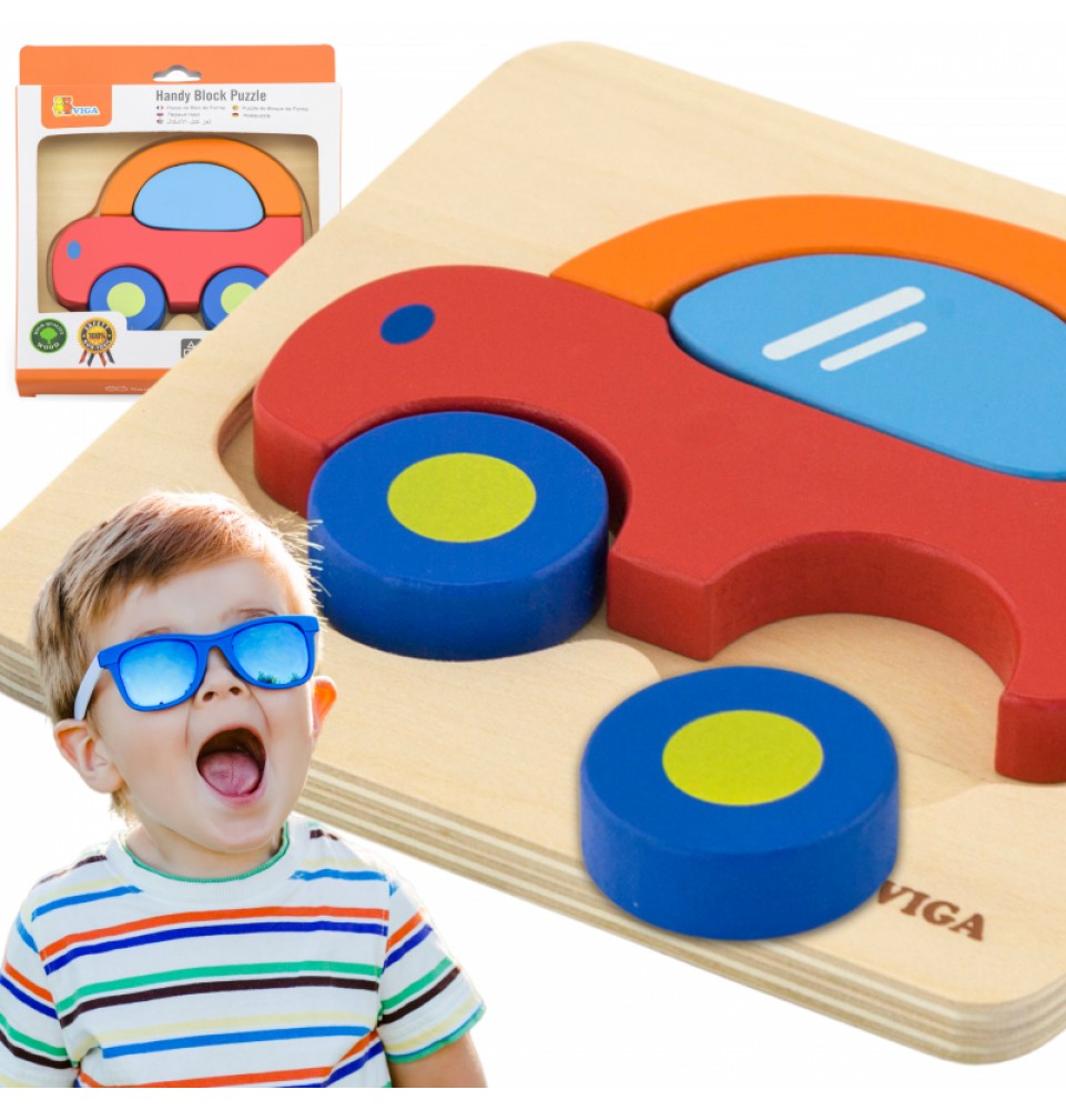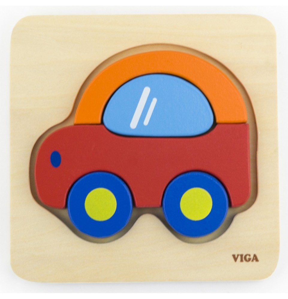 Mediniai mini galvosūkiai vaikams iš garsaus „Viga“ prekės ženklo Tai puikus sprendimas tiek namams, tiek ikimokyklinio amžiaus vaikams. Dėlionę sudaro keturios dalys , kurios kartu sudaro automobilį . Medinis pagrindas yra įdubęs, kad atitiktų spalvingas dėlionės dalis.