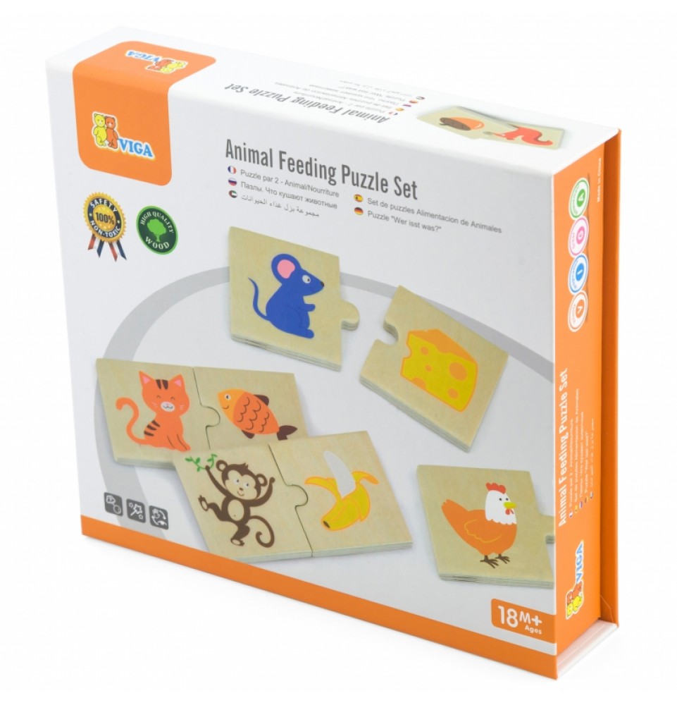 VIGA medinis dėlionė „Pamaitink gyvūną“: ką ėda gyvūnai