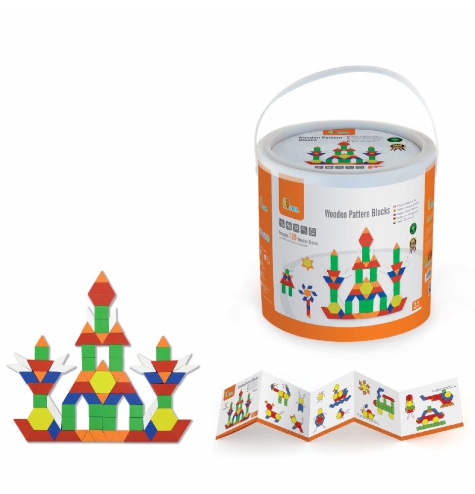 VIGA mediniai plokšti kaladėlės kibire, 250 Montessori detalių