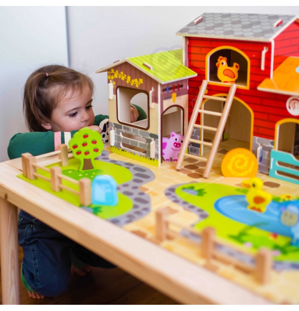 Dėl realistiškų figūrėlių ir pastatų, tokių kaip arklidė, tvartas ir vištidė, vaikai gali susikurti savo ūkį ir žaisti vaidmenimis įvairius scenarijus. Tai ne tik labai smagu, bet ir suteikia praktinio mokymosi apie gamtą, gyvūnus ir kasdienį gyvenimą ūkyje .