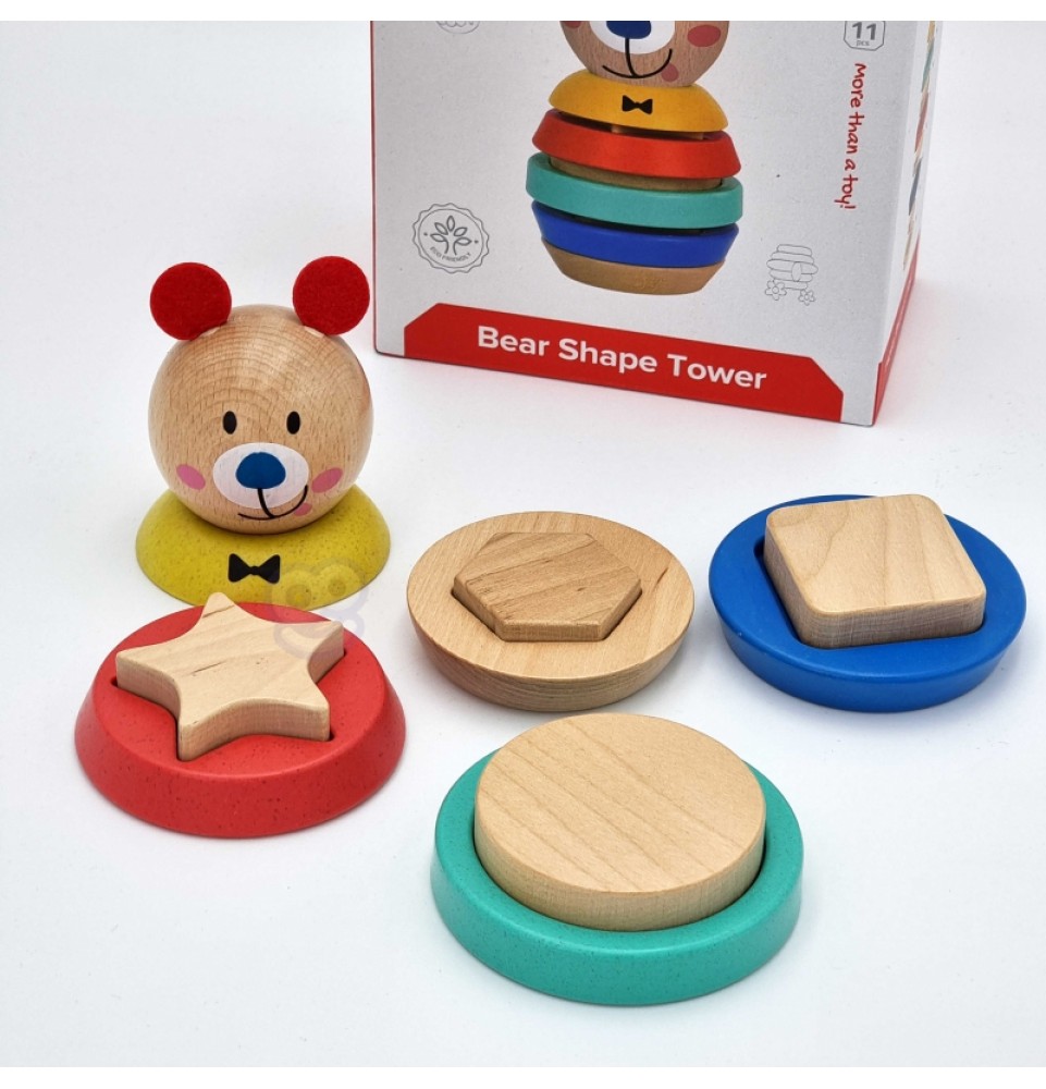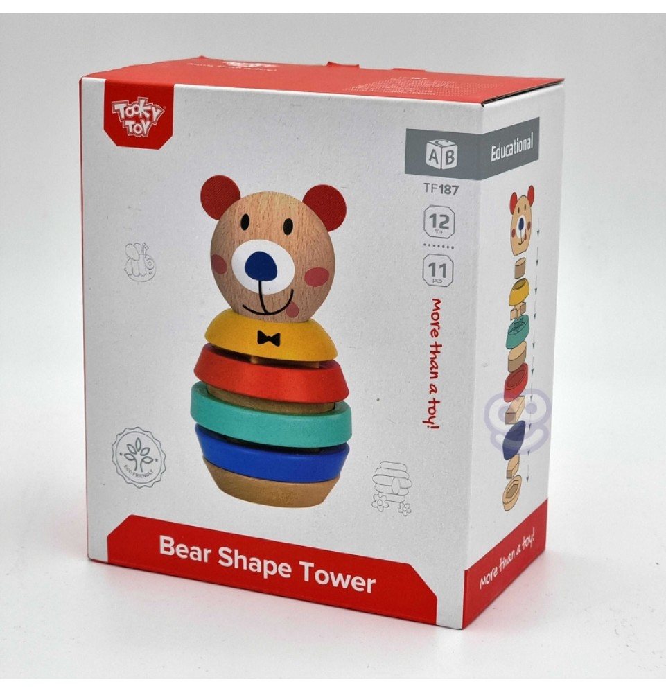 Ši elegantiško meškiuko formos medinė dėlionė iš „Tooky Toy“ yra puikus žaislas vaikams nuo 12 mėnesių amžiaus . Dėl įvairių dydžių , formų ir spalvų detalių, žaislas yra sudėtinga dėlionė vaikams. Surinkdami meškiuko detales, jie turi atitikti formas. Šis tvirtos konstrukcijos ir spalvingas žaislas skatins vaikų smalsumą ir suteiks valandų valandas pramogų. Jis taip pat lavina loginį mąstymą ir rankų įgūdžius . Nudažytas netoksiškais dažais, jis yra saugus vaikams ir aplinkai.