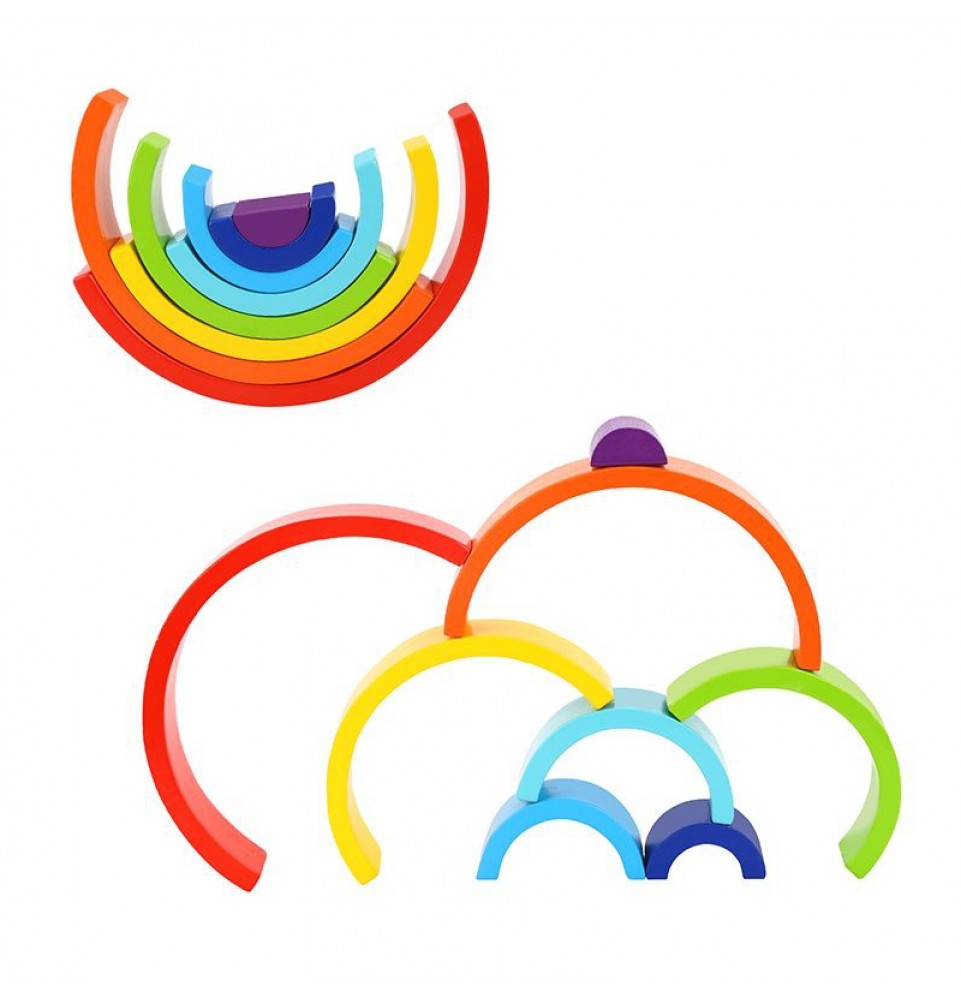 Medinė vaivorykštė iš TOOKY TOY tikrai sužadins jūsų vaiko vaizduotę! Vaikai gali išdėlioti jas į vaivorykštę ir atrasti spalvų tvarką. Šios spalvingos medinės arkos siūlo daug daugiau galimybių, nei gali pasirodyti iš pirmo žvilgsnio. Vaikai gali iš jų sukurti spalvingą tunelį arba sudėlioti jas įvairiais būdais, kad sukurtų išradingus bokštus. Galiausiai, tai, kuo taps vaivorykštė, priklauso tik nuo vaiko kūrybiškumo. Šis žaislas lavins rankų miklumą, kūrybiškumą ir vaizduotę bei gerins susikaupimą. Vaikams patiks vaivorykštė ir jos teikiamos galimybės.