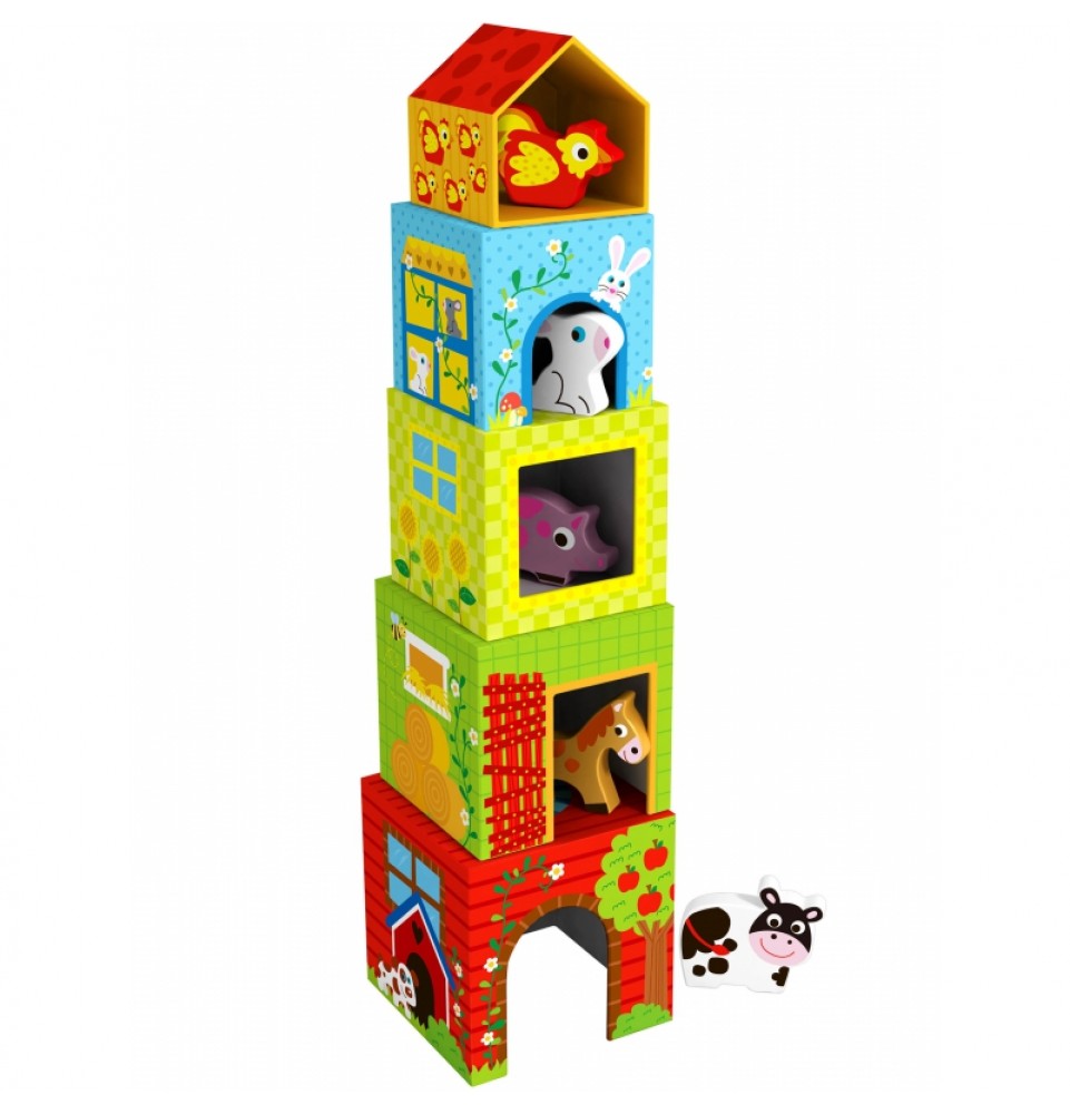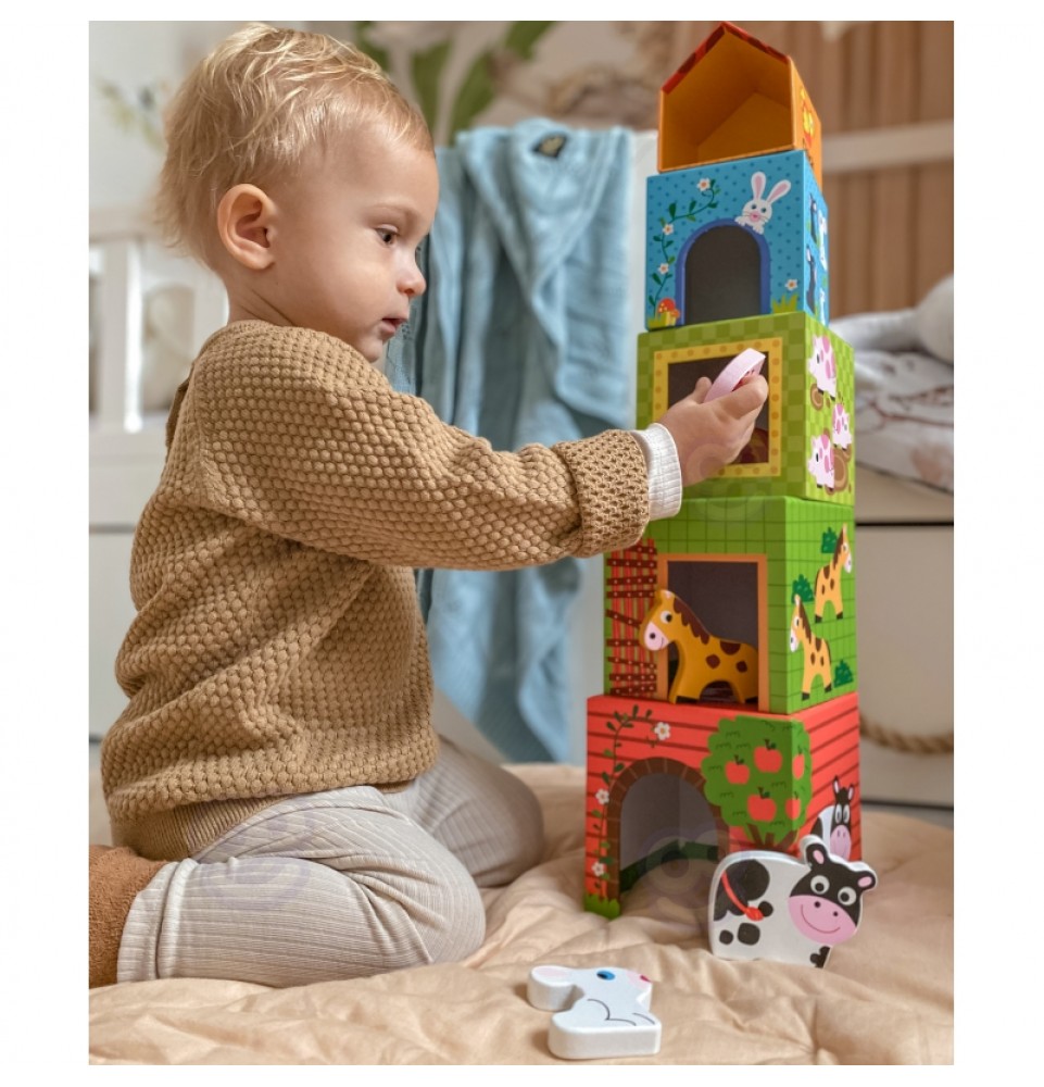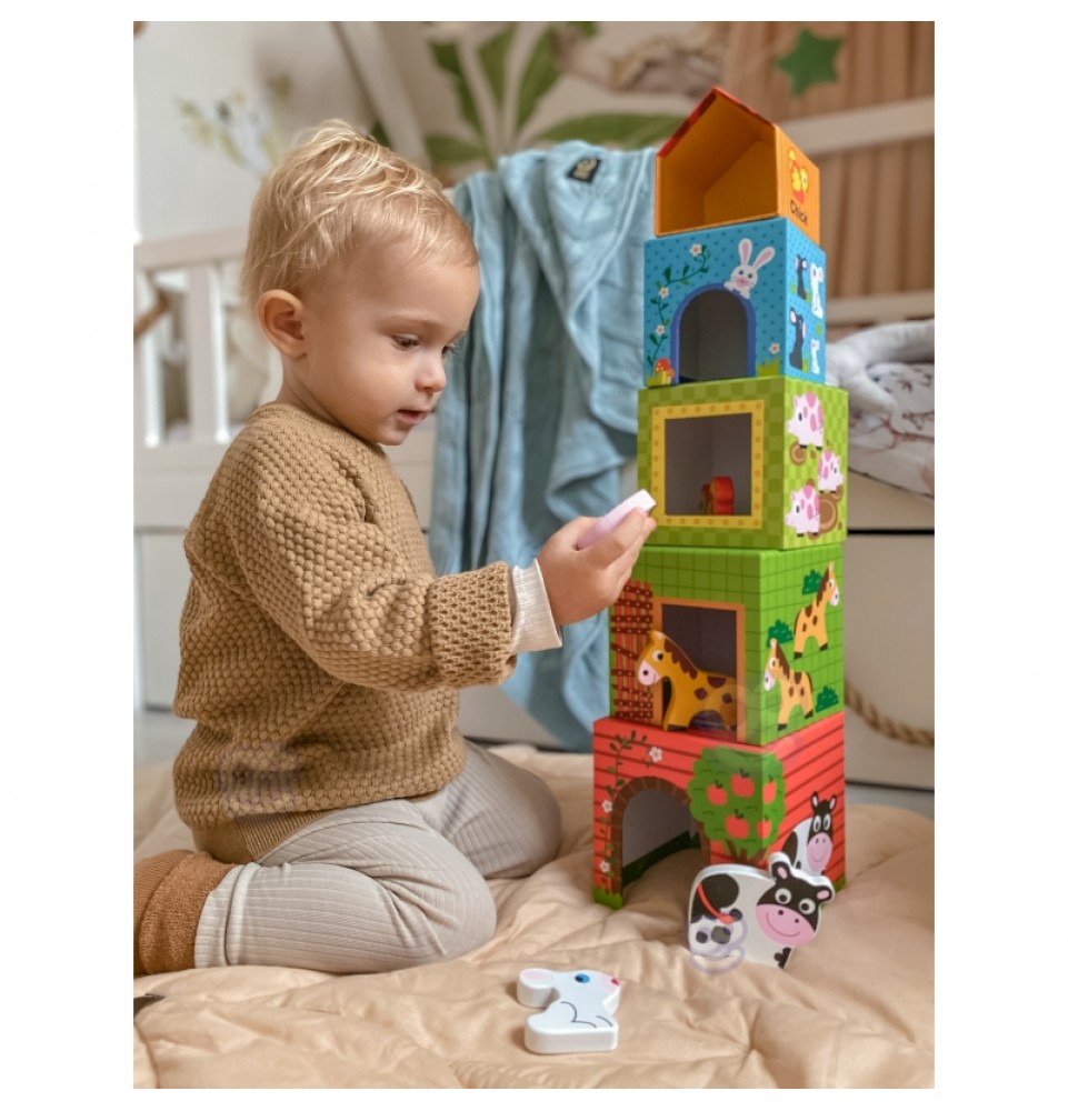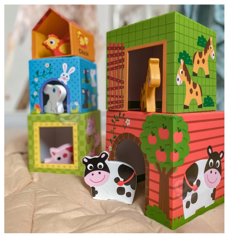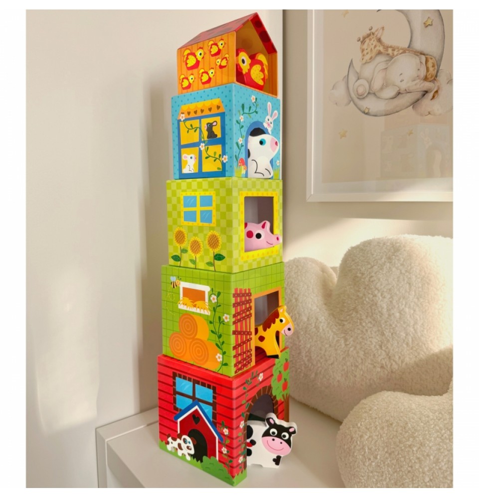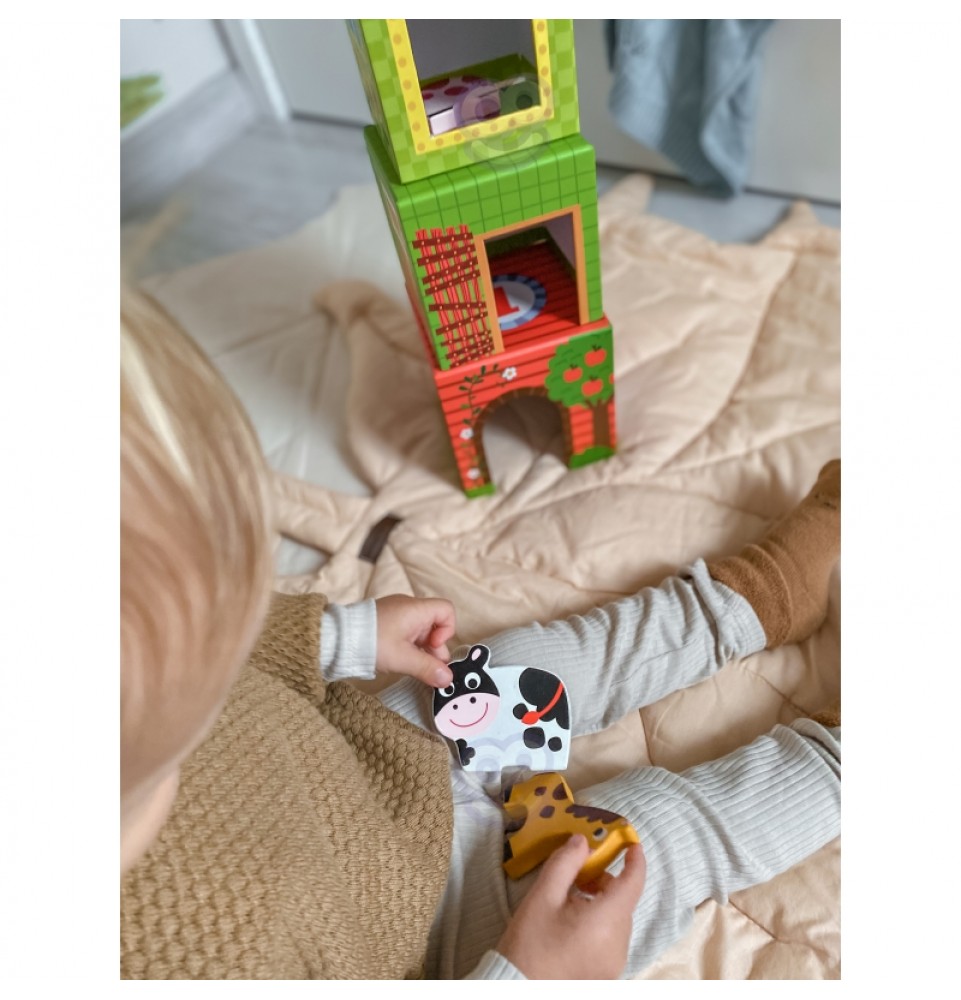 WOOPIE GREEN Ūkio dėžutėse kubelių dėlionė + figūrėlės 10 vnt.