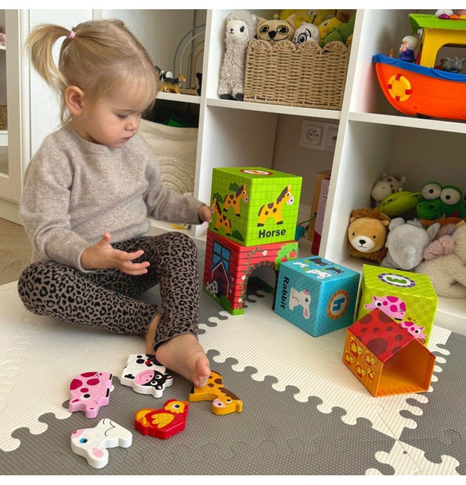 Rinkinys ne tik linksmas, bet ir lavinamasis – moko skaičiuoti, atpažinti gyvūnus, lavina erdvinį suvokimą ir vaizduotę. Kubeliai taip pat gali būti naudojami smulkiems daiktams , pavyzdžiui, pieštukams ar figūrėlėms, laikyti .