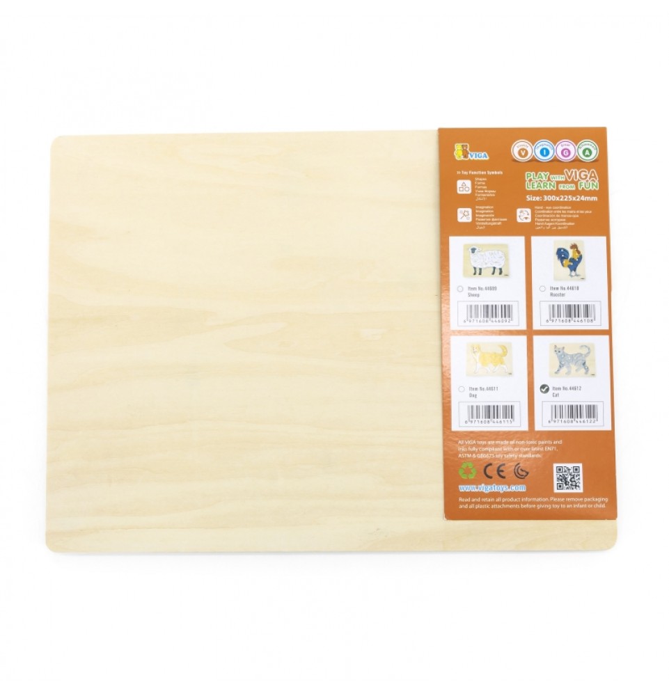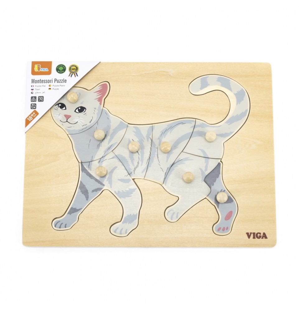 VIGA medinė Montessori dėlionė katė su smeigtukais