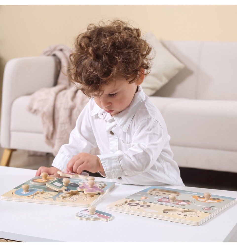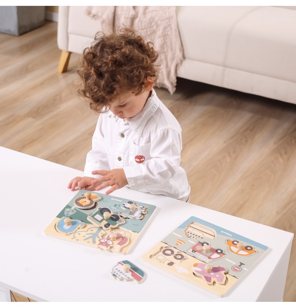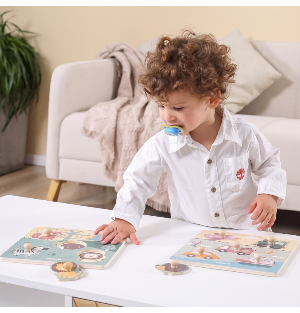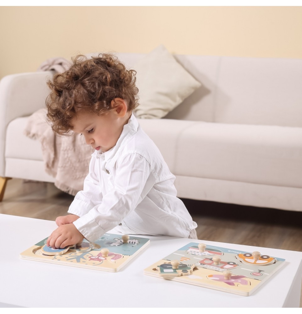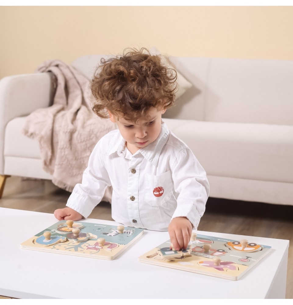 Medinė dėlionė su smeigtukais iš „Viga for Kids“ Tai idealus sprendimas tiek namams, tiek ikimokyklinio amžiaus vaikams. Jį sudaro lenta ir penkios teminės detalės, kurias reikia pritvirtinti. Medinis pagrindas turi įdubimus, atitinkančius spalvingų dėlionės detalių formas. Visas rinkinys pagamintas iš medžio ir nudažytas vaikams saugiais dažais ryškiomis spalvomis, kurios pradžiugins kiekvieną naudotoją ir suteiks daug džiaugsmo.