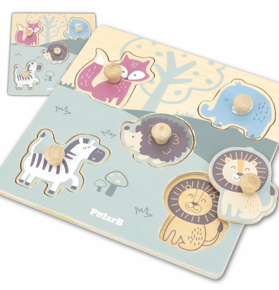 VIGA PolarB medinė dėlionė Gyvūnai su smeigtukais
