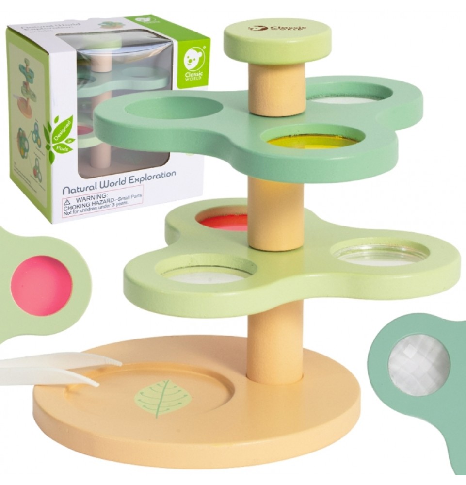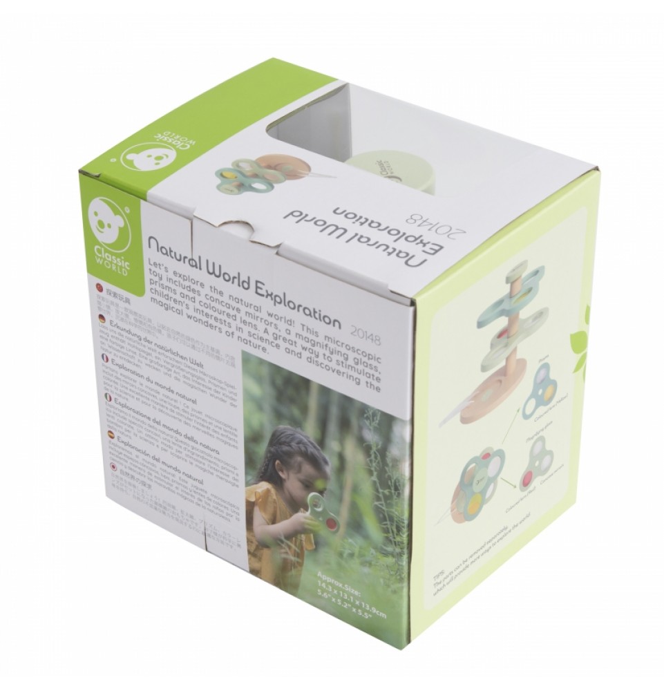 CLASSIC WORLD medinis 2 viename mikroskopo didinamasis stiklas „Gamtos pasaulio tyrinėjimas“ – puiki pramoga mažiesiems tyrinėtojams. Šis mikroskopinis žaislas turi įgaubtus veidrodėlius, didinamąjį stiklą, prizmes ir spalvotus lęšius. Tai puikus būdas sužadinti vaikų susidomėjimą mokslu ir atrasti magiškus gamtos stebuklus.