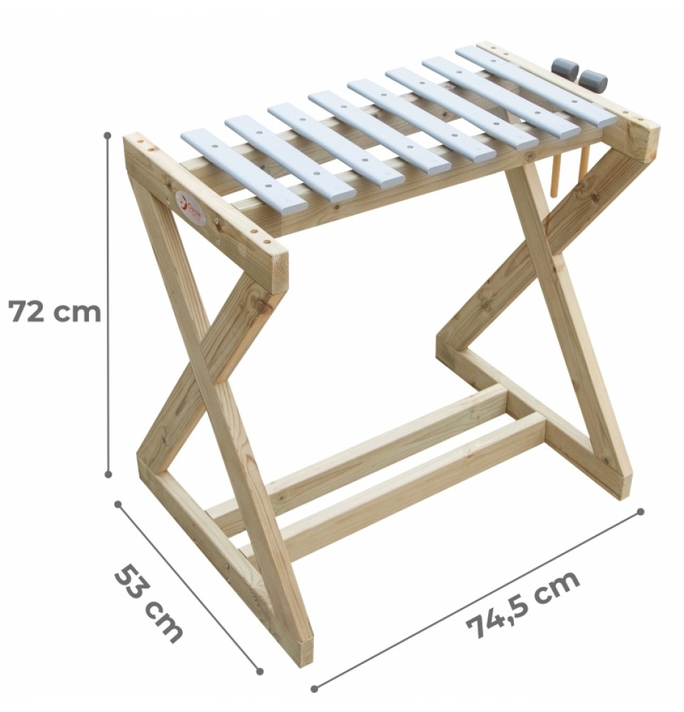 CLASSIC WORLD metalofonas iš EDU serijos užpildys bet kokią lauko erdvę, pavyzdžiui, sodą ar žaidimų aikštelę, muzika! Žavus prietaisas, padedantis vaikams lavinti muzikinį kūrybiškumą! Šis nuostabus instrumentas yra puikus būdas įvairaus amžiaus vaikams kurti harmonijas ir ritmus. Jis taip pat suteikia galimybių saviraiškai kuriant , didindamas vaikų pasitikėjimą savimi ir pasitikėjimą savimi . Rinkinį sudaro du plaktukai , kuriuos galima patogiai laikyti šone. Jis pagamintas iš aukštos kokybės , oro sąlygoms atsparios medienos, gautos iš tvarių šaltinių.
