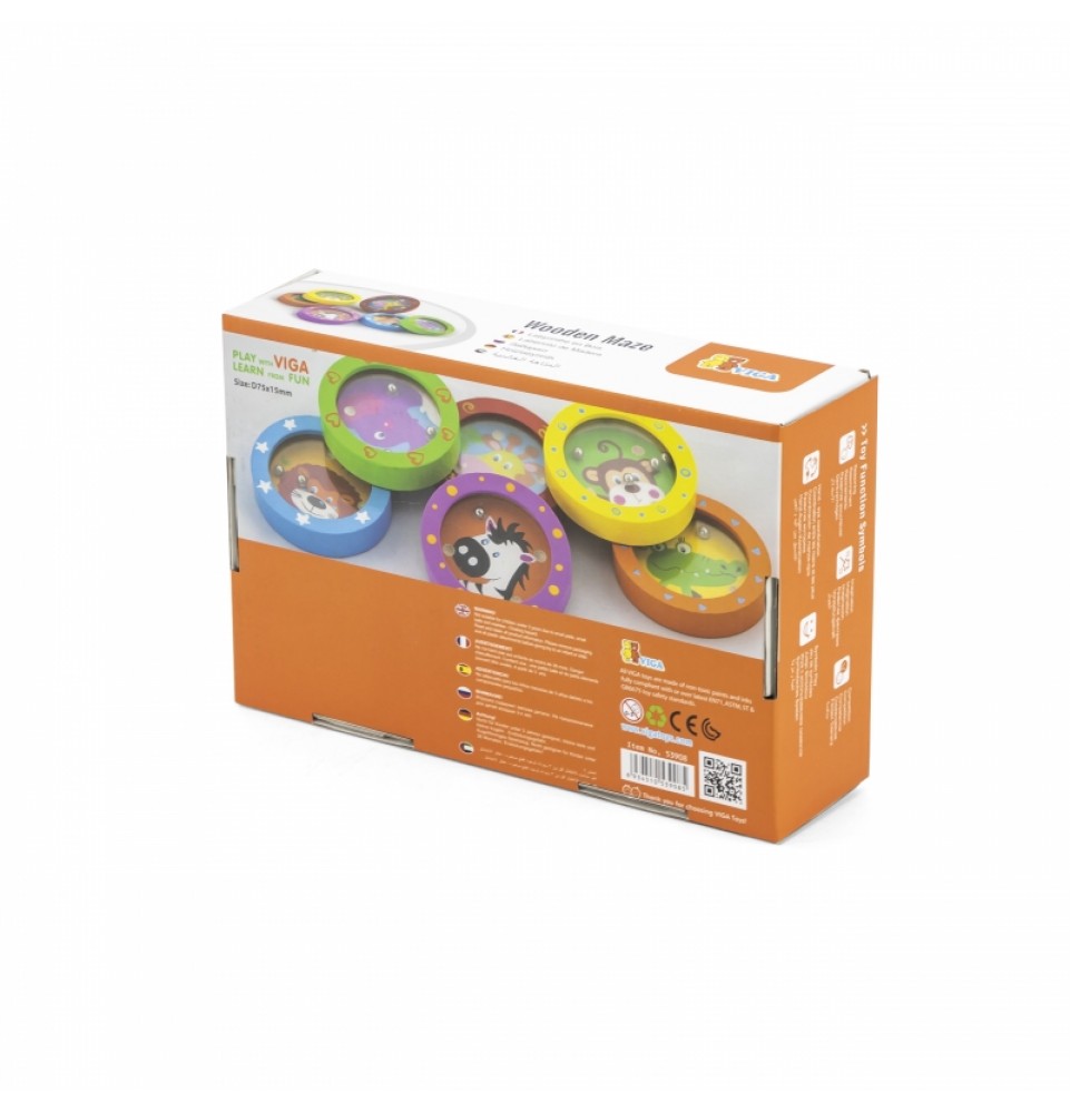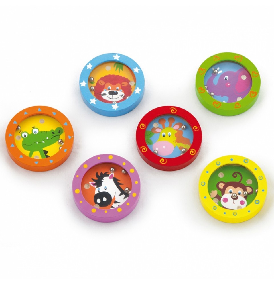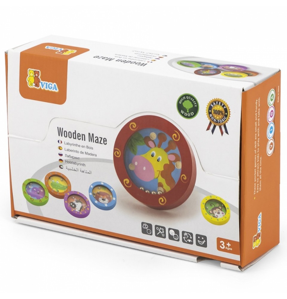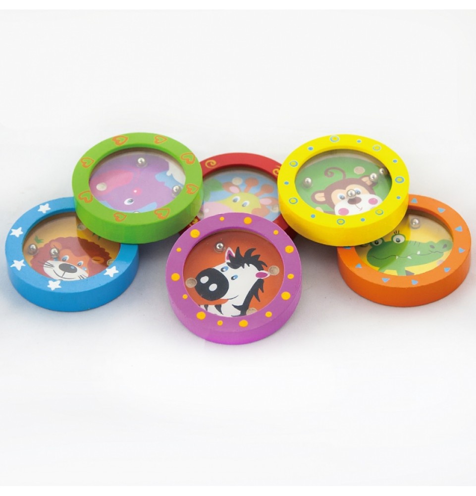 Smagiai praleiskite laiką ir mokykitės žaisdami mūsų medinius labirintus su linksmais gyvūnais. Tai ne tik įgūdžių žaidimas , bet ir terapinė funkcija. Kiekvienas žaislas vaizduoja skirtingą gyvūną su jo mėgstamomis spalvomis ir raštais. Vaikai turi įstatyti mažus kamuoliukus į tinkamas skylutes, o tai reikalauja susikaupimo ir loginio mąstymo. Mažas ir lengvas žaislas yra patogus pasiimti su savimi ir žaisti bet kur . Žaislas pagamintas iš aukštos kokybės medienos ir padengtas netoksiškais dažais, užtikrinančiais saugumą ir ilgaamžiškumą.