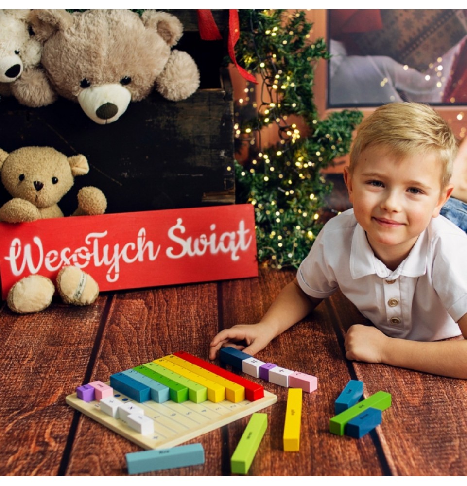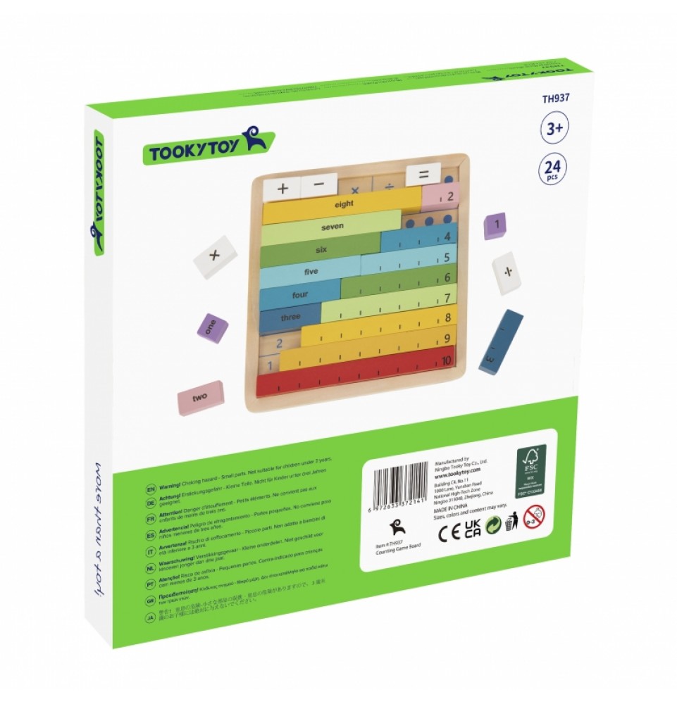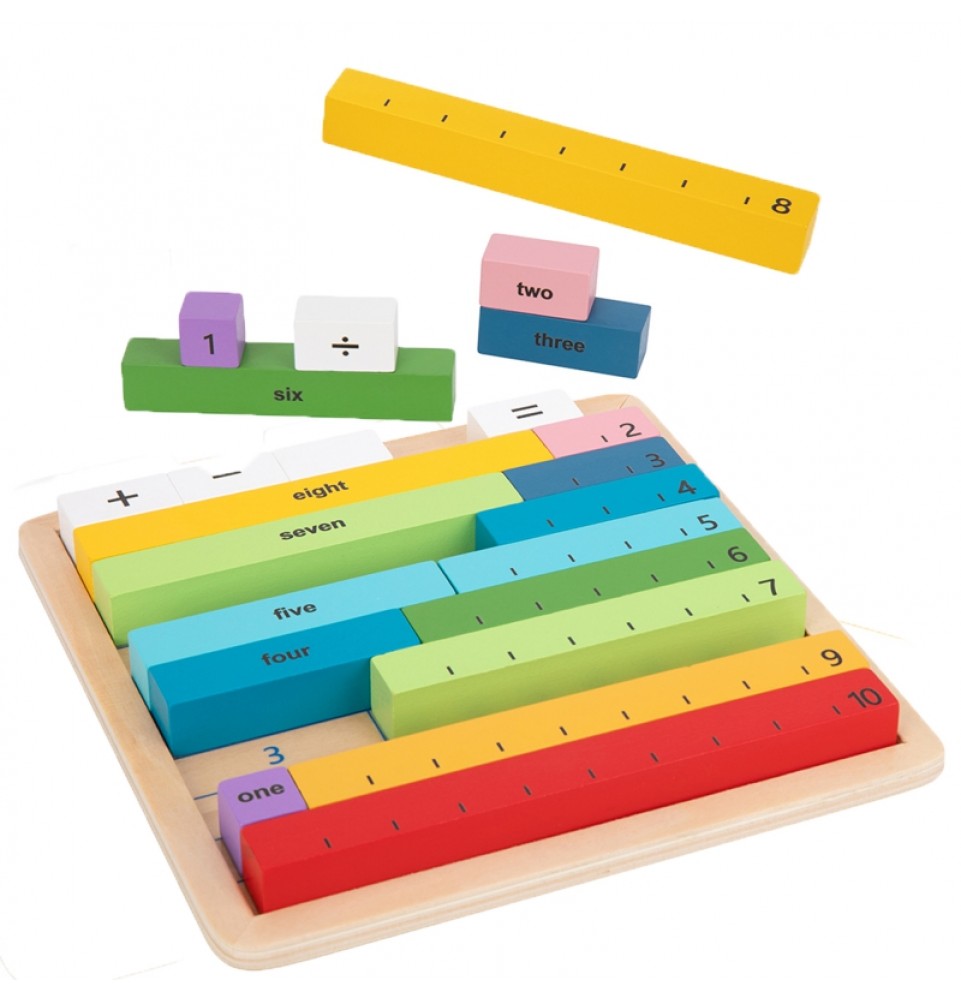 Šios spalvingos medinės „ Tooky Toy“ kaladėlės padės mokiniams mokytis matematikos . Šis žaislas suteikia interaktyvų ir praktinį būdą tyrinėti matematiką ir atrasti matematines sąvokas, tokias kaip aritmetika ir daugiklių radimas . Skaičiavimo lenta yra puiki mokymosi priemonė . Gaminyje taip pat yra matematinių simbolių, kad būtų lengva rasti lygtis. Šis kaladėlių rinkinys yra puiki vaizdinė priemonė , kuri padės bet kuriam vaikui pagerinti pagrindinius matematikos įgūdžius . Šis žaislas skirtas pradedantiesiems, kurie jau supranta skaičių sąvokas ir pagrindinius sudėties bei atimties veiksmus. Kai baigsite dienos matematikos užduotį, kaladėles galima supakuoti į medinę lentą, kad viskas būtų tvarkingai.