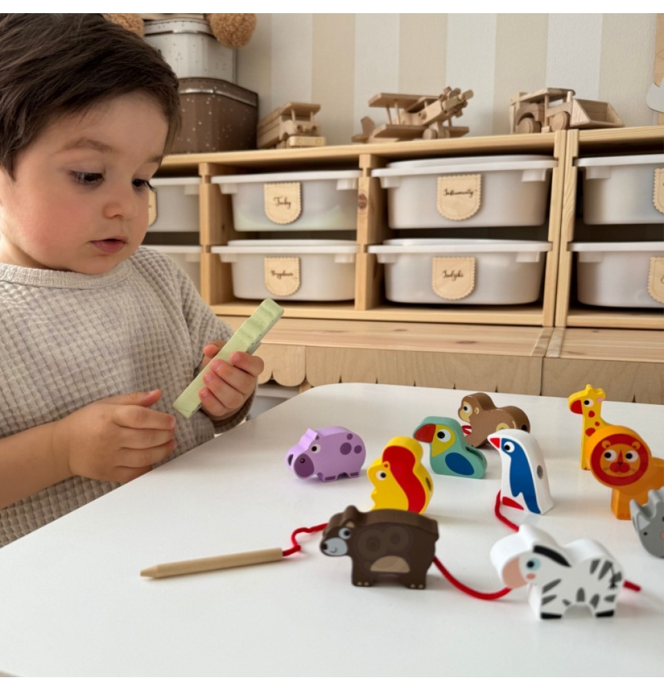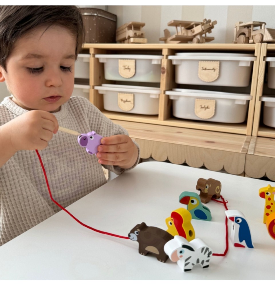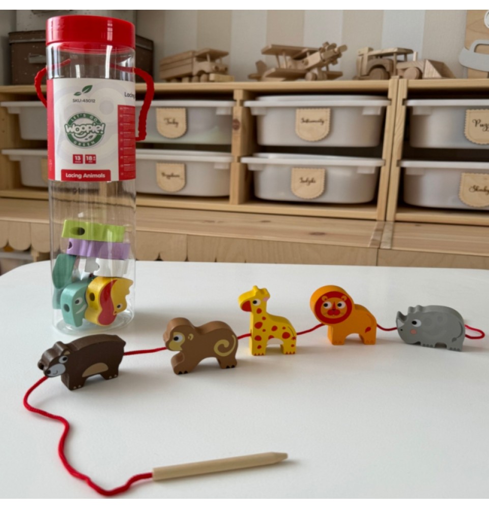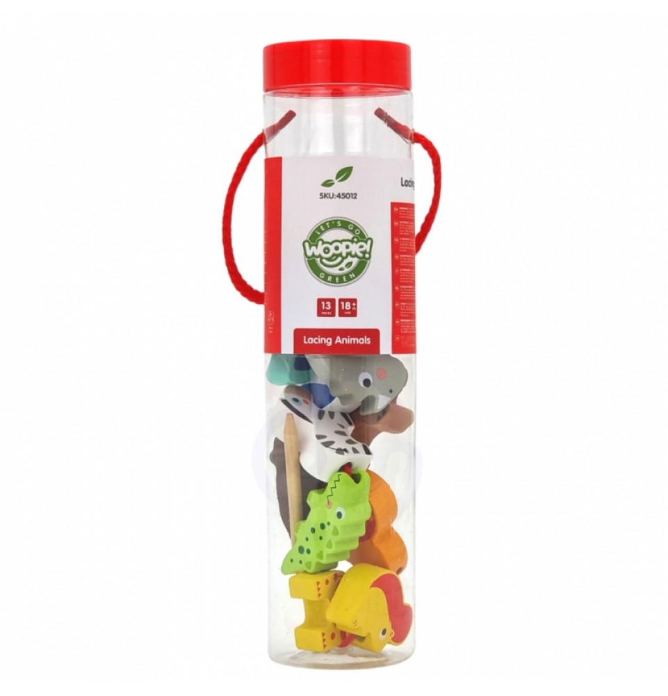 Atraskite unikalią „WOOPIE“ VERIMO žaislų GREEN seriją – tai ne tik klasikinis siūlų vėrimo žaidimas, bet ir tikras nuotykis laukinių gyvūnų pasaulyje! Šis zoologijos sodo safario tematikos rinkinys leidžia vaikams nuo 18 mėnesių lavinti smulkiąją motoriką, kartu mokant kantrybės ir tikslumo . Vaikai raginami ant pritvirtintos virvelės suverti medinius karoliukus su skylutėmis. Kiekvienas kaladėlis vaizduoja skirtingą gyvūną ar safario elementą – nuo žaismingos beždžionės iki didingo liūto! Tai puiki proga lavinti ne tik smulkiąją motoriką, bet ir domėjimąsi gamtos pasauliu.