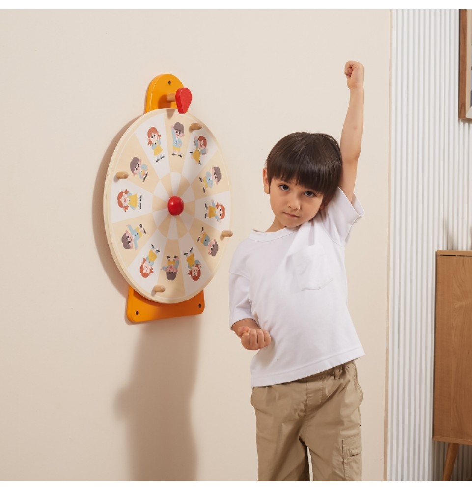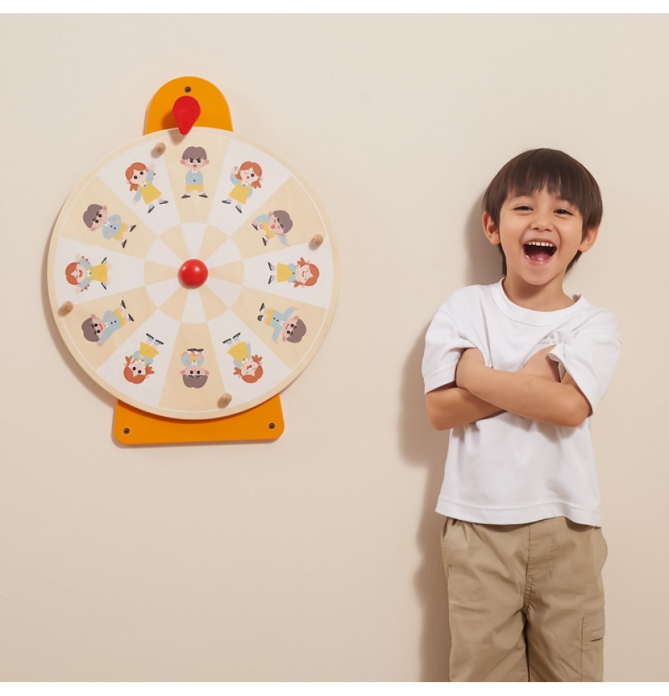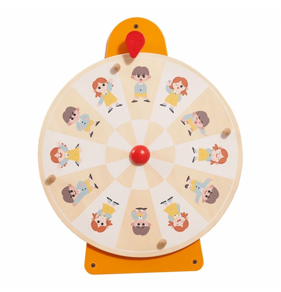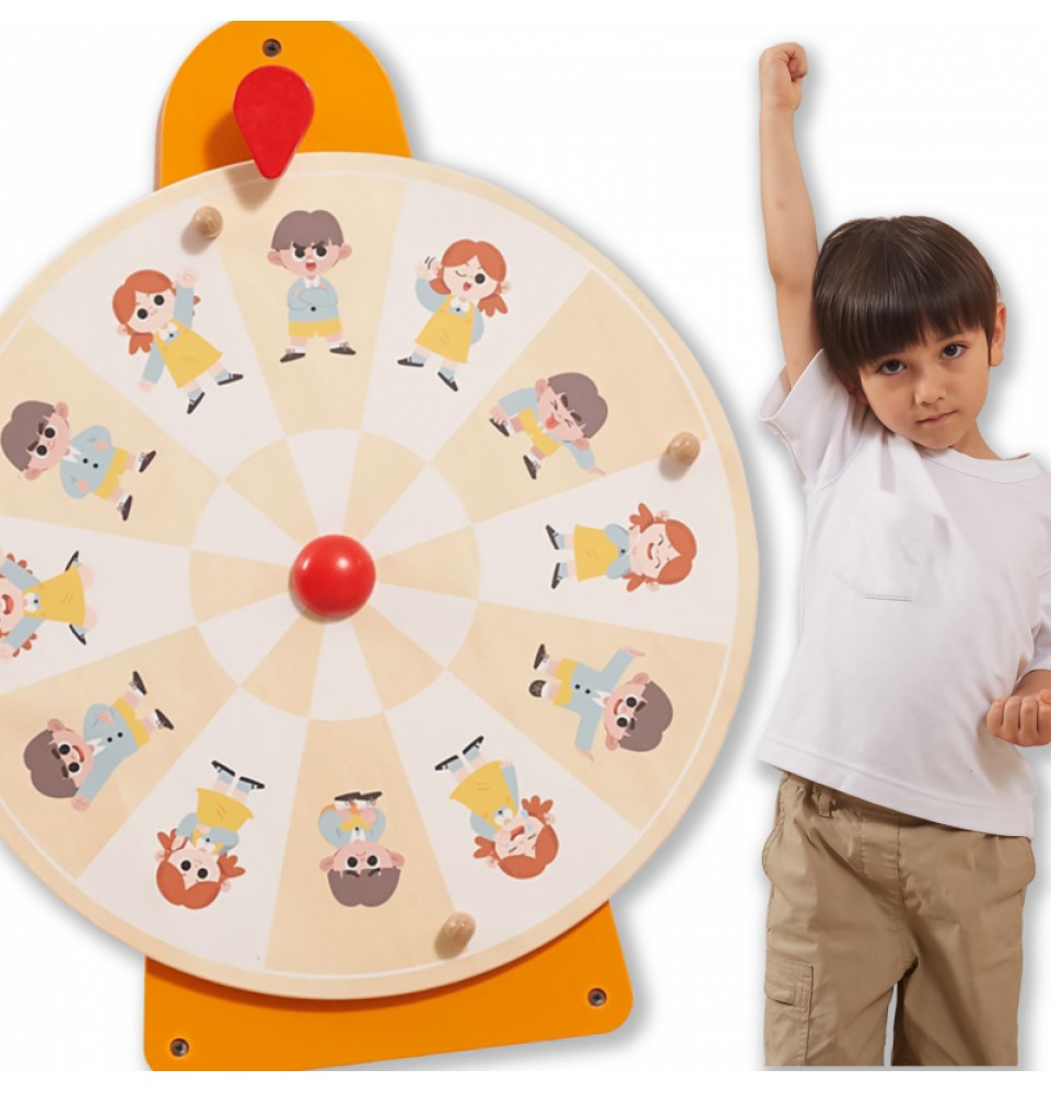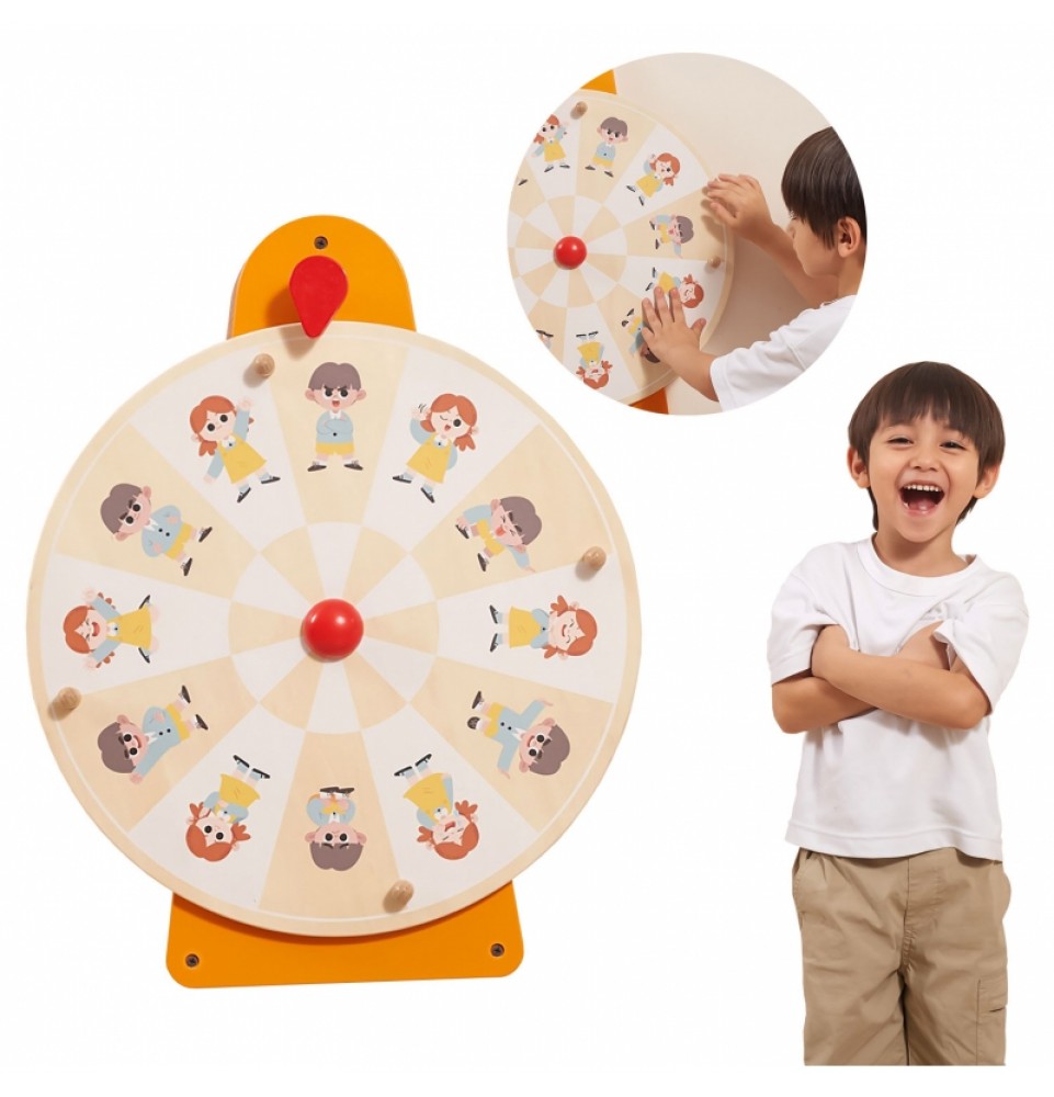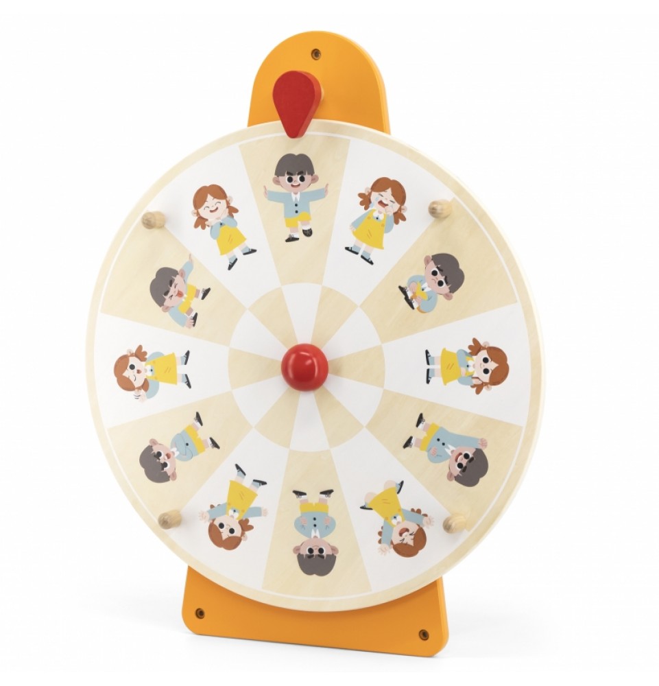 Šis interaktyvus medinis žaislas iš „Viga“ turi 12 vaikų, turinčių skirtingas veido išraiškas ir veiksmus. Pasukite ratą ir palaukite, kol jis sustos. Raudona rodyklė nurodys vaiką, kurį norite mėgdžioti. Žaidimas padeda vaikams atrasti skirtingas emocijas ir kūno judesius , lavinti stebėjimo ir reakcijos įgūdžius . Puikiai tinka naudoti mokyklose ir kitose vietose.