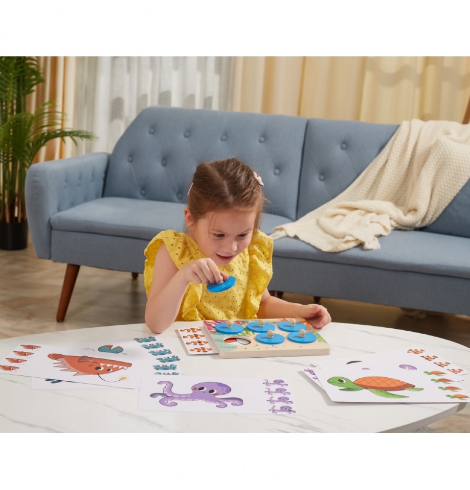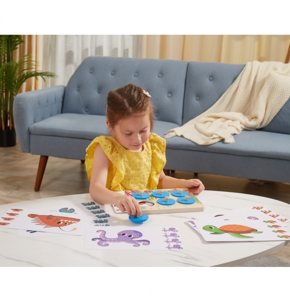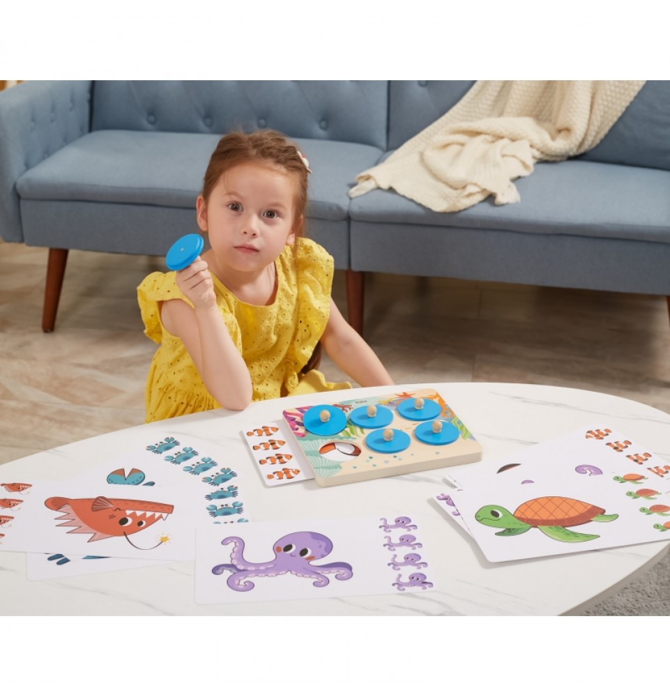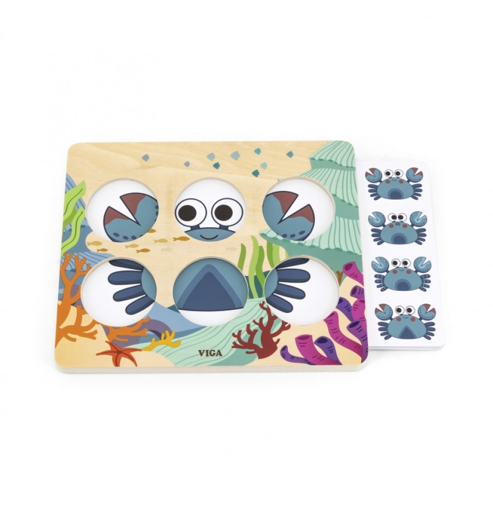 Taisyklės : Įkiškite kortelę į medinę lentą, pakelkite apskritimą už rankenos, pažiūrėkite į rašto elementą ir atspėkite, kuris iš keturių paveikslėlių atitinka paslėptą gyvūną. Jei negalite atspėti, pakelkite kitą apskritimą, kad atskleistumėte detales.