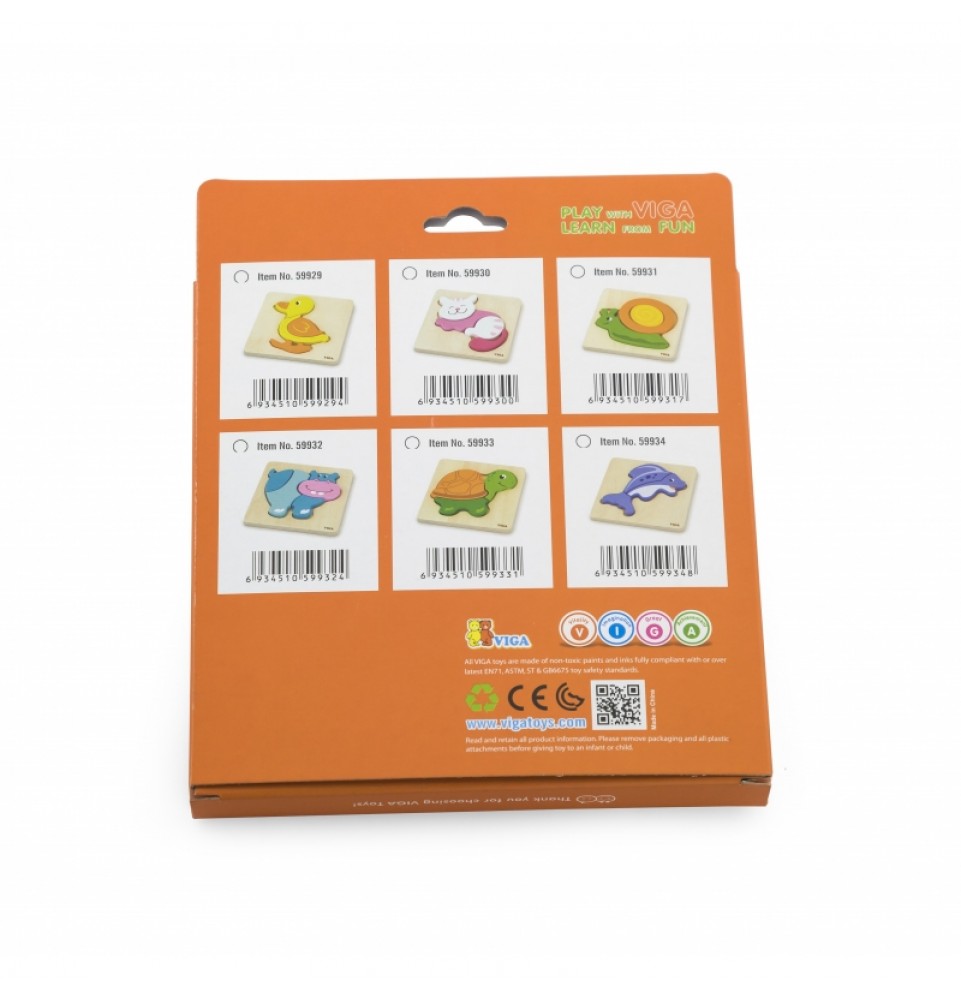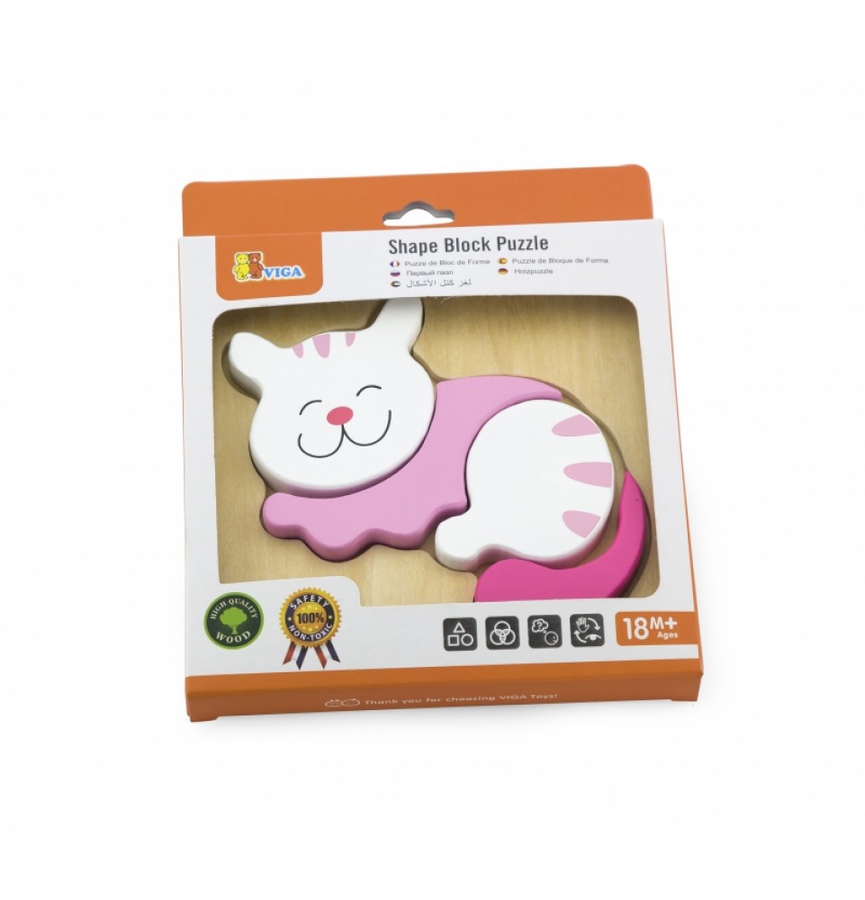 Mediniai mini galvosūkiai vaikams iš garsaus „Viga“ prekės ženklo Tai puikus sprendimas tiek namams, tiek ikimokyklinio amžiaus vaikams. Dėlionę sudaro keturios dalys , kurios kartu sudaro katę . Medinis pagrindas yra įdubęs, kad atitiktų spalvingas dėlionės dalis.