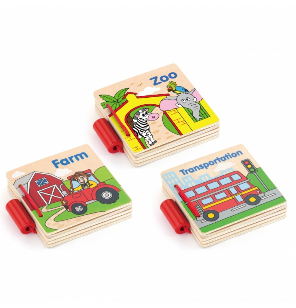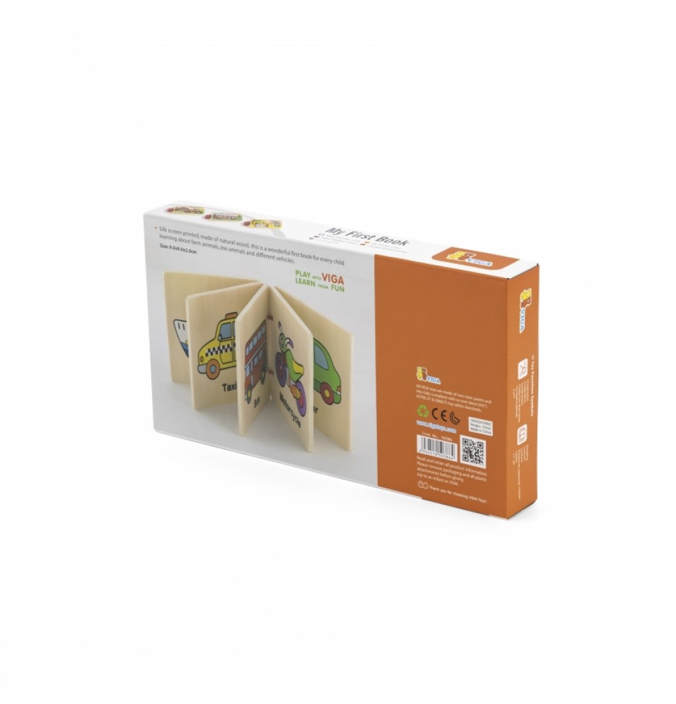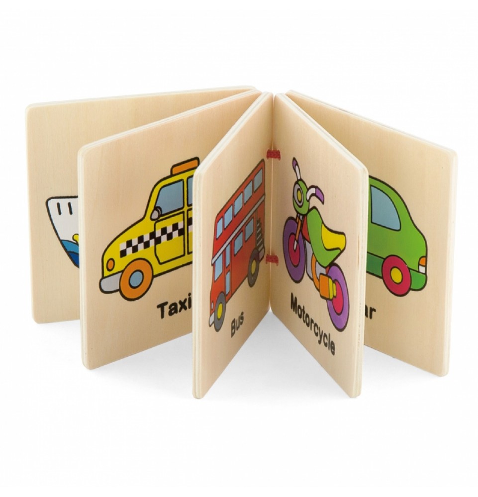 Ši nuostabi medinė „Viga“ knygelė skatina vaizduotę ir susikaupimą . Medinės kortelės sujungtos raudonu siūlu. Kiekviena kortelė turi skirtingą paveikslėlį ir užrašus anglų kalba . Šis gaminys skirtas vaikams nuo 12 mėnesių amžiaus . Tai puiki idėja ikimokykliniam ugdymui ir naudojimui namuose. Šis žaislas moko vaikus pažinti daiktus ir spalvas , padeda lavinti smulkius rankų judesius . Jis taip pat supažindina vaikus su pirmaisiais žodžiais anglų kalba.
