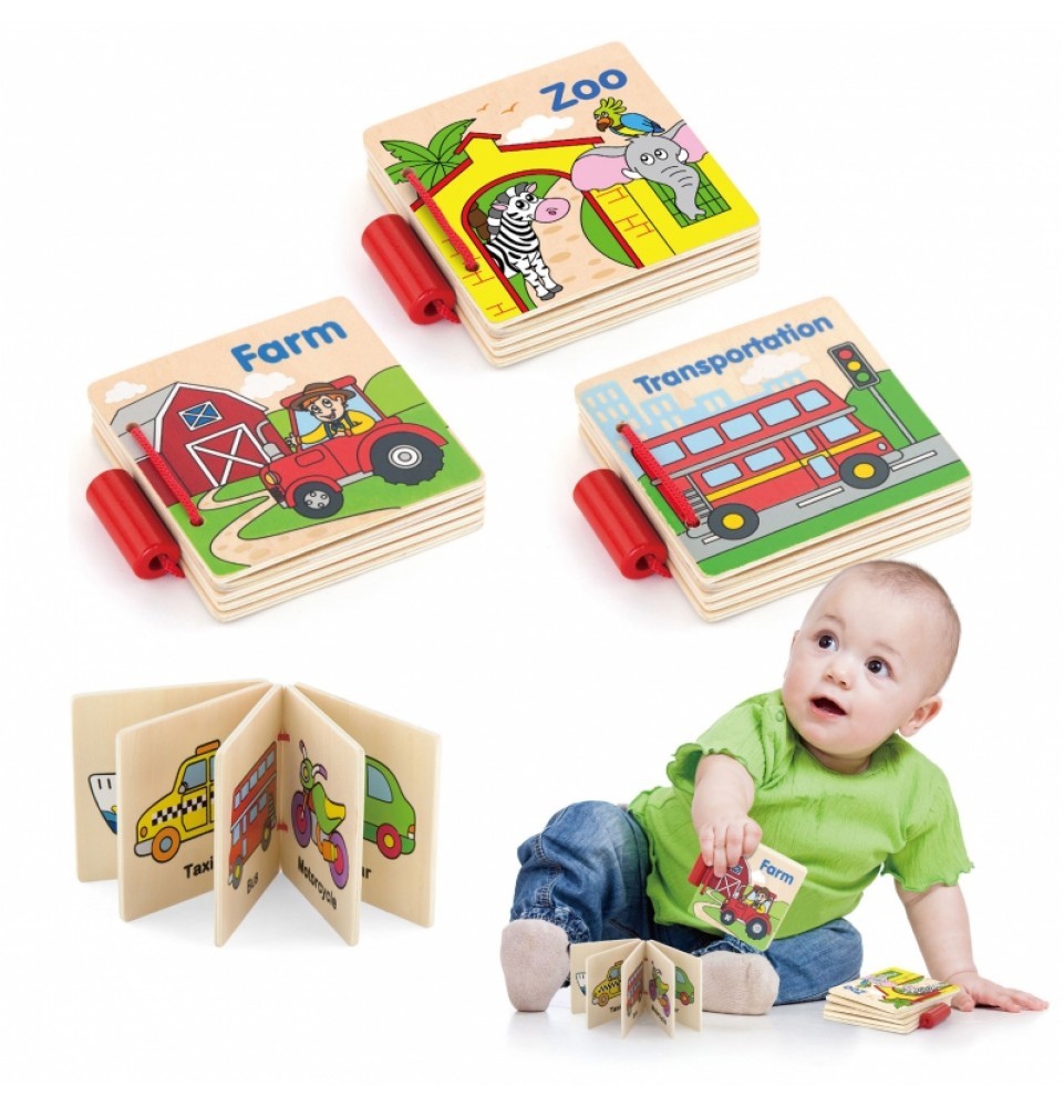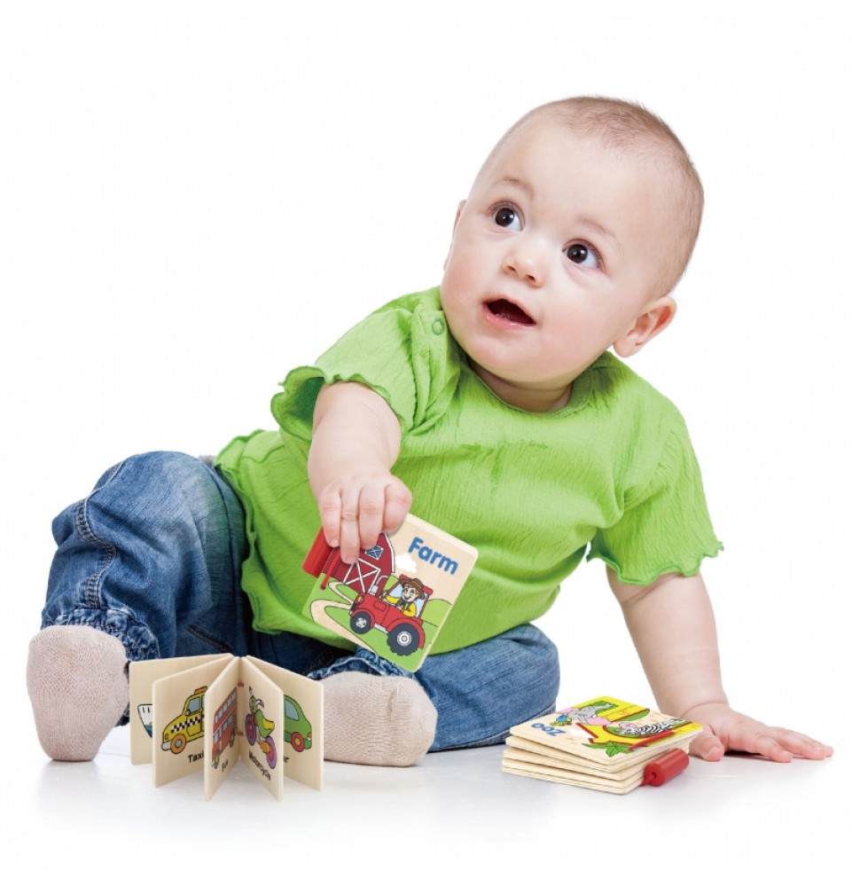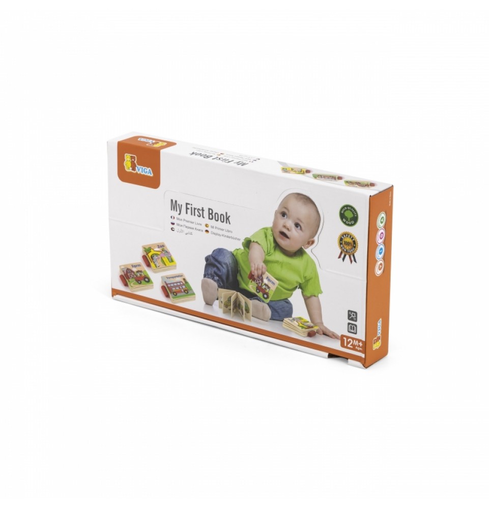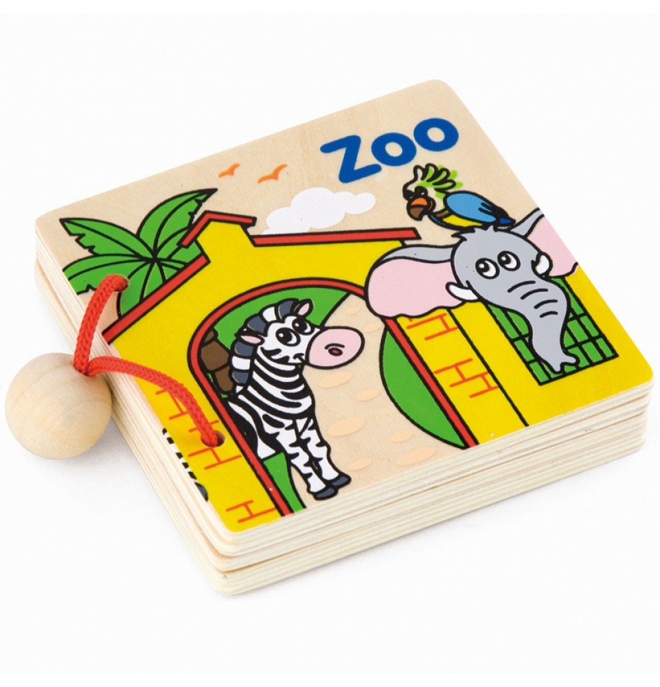 Ši nuostabi medinė „Viga“ knygelė skatina vaizduotę ir susikaupimą . Medinės kortelės sujungtos raudonu siūlu. Kiekviena kortelė turi skirtingą paveikslėlį ir užrašus anglų kalba . Šis gaminys skirtas vaikams nuo 12 mėnesių amžiaus . Tai puiki idėja ikimokykliniam ugdymui ir naudojimui namuose. Šis žaislas moko vaikus pažinti daiktus ir spalvas , padeda lavinti smulkius rankų judesius . Jis taip pat supažindina vaikus su pirmaisiais žodžiais anglų kalba.