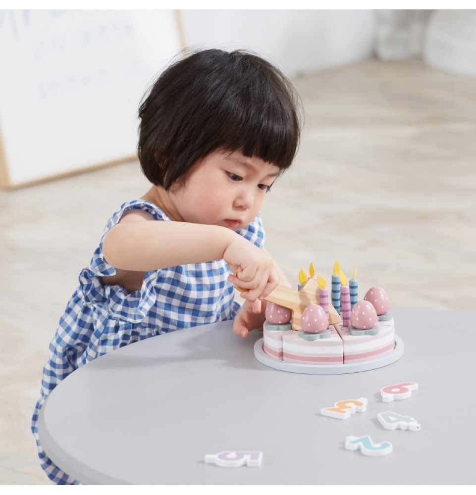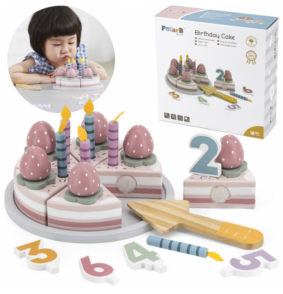 Saugus ir kūrybingas medinis pjaustomas tortas iš „Viga“. Tortą sudaro 6 torto gabalėliai, 5 mediniai skaičių kaladėlės, nuimamos žvakės, dekoratyvinės braškės, lėkštė ir medinė mentelė. Šis tortas yra aukščiausios klasės žaislas, kuris tarnaus ilgai ir suteiks jūsų vaikui daug metų įdomių ir kūrybiškų žaidimų. Spalvingas tortas yra vizualiai patrauklus ir skatina žaisti. Šis žaislas suteiks nuostabių pramogų meškiuko, lėlės ar ikimokyklinio amžiaus draugo gimtadienio vakarėlyje.