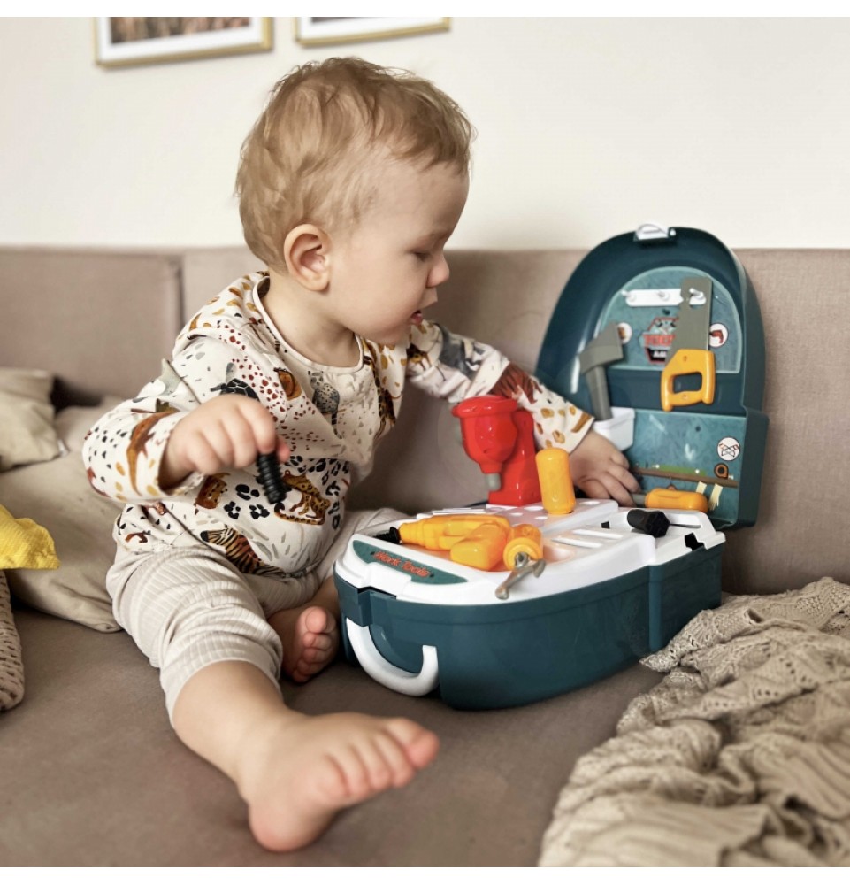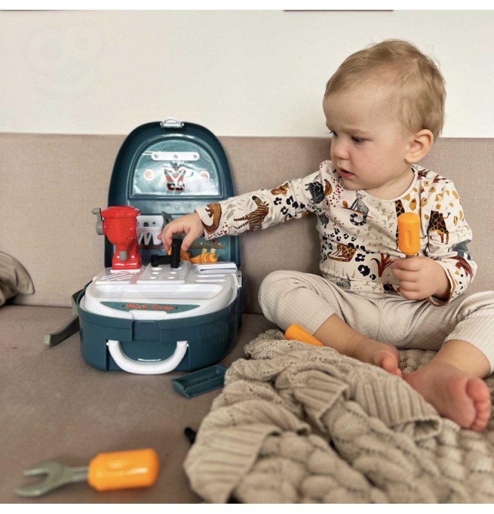 WOOPIE mažojo meistro kuprinės rinkinys leis jūsų vaikui pasijusti tikru meistru – kur ir kada tik panorės! Vaikai mėgsta apsimesti meistru, meistrauti ir mėgdžioti savo tėvus, besidarbuojančius garaže. Rinkinį sudaro 18 detalių : viskas, ko reikia meistrui. Žaislas gali būti naudojamas ir kaip kuprinė, nes turi pečių dirželius, todėl mažojo meistro rinkinį galite pasiimti bet kur . Vaidmenų žaidimai ir tėvų/profesijų mėgdžiojimas lavina jūsų vaiko sąmoningumą ir skatina vaizduotę bei kūrybiškumą .