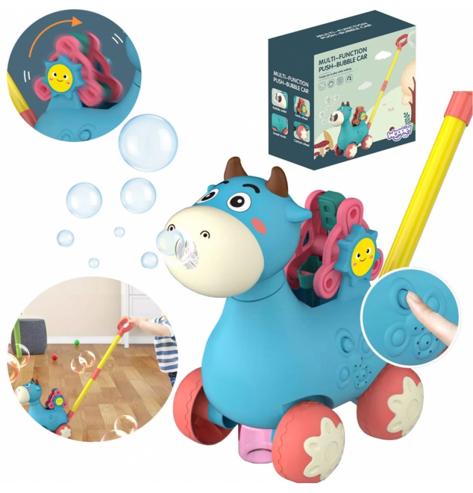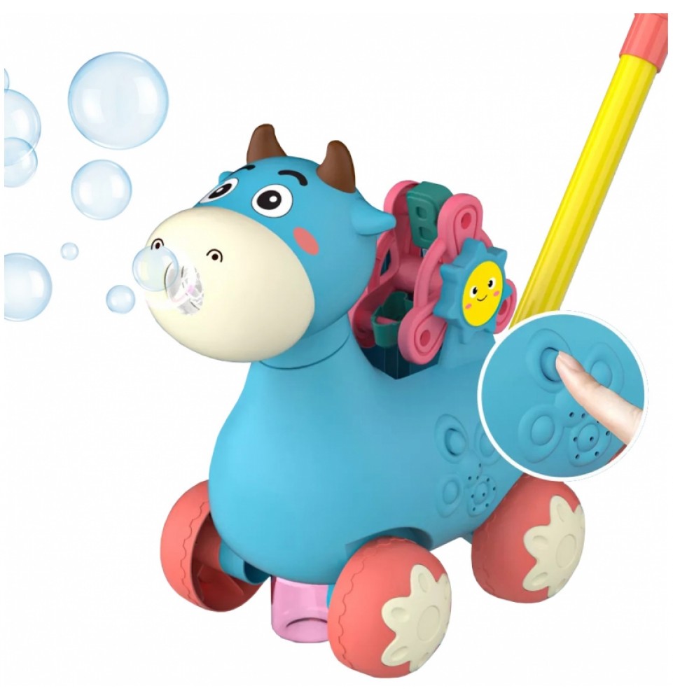 WOOPIE Stumiama karvė su garsu ir muilo burbulais, mėlyna