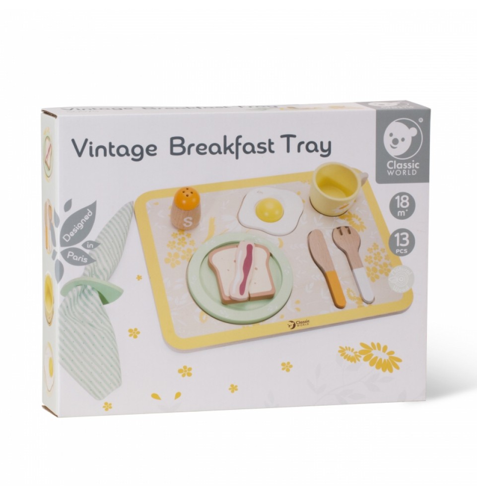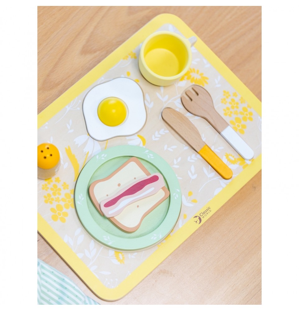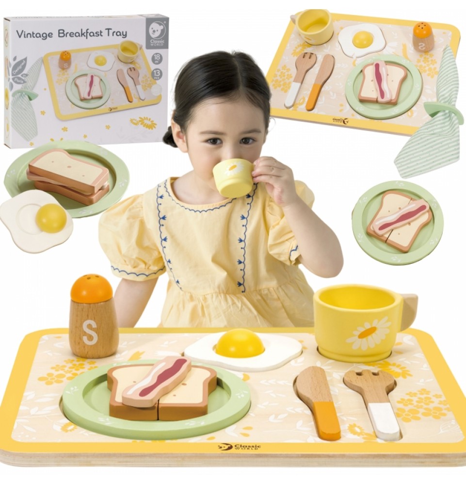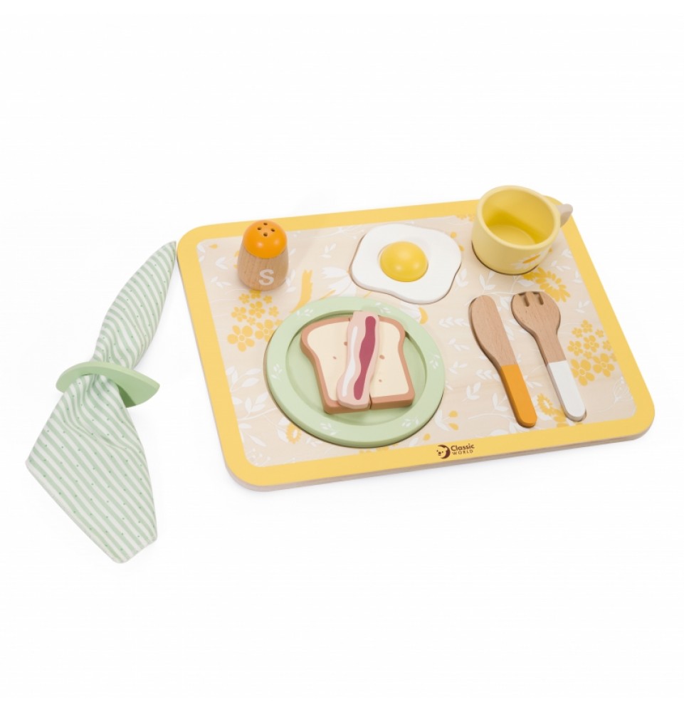 CLASSIC WORLD pusryčių rinkinys suteiks jūsų vaikui energijos visai dienai ir puikiai stimuliuos jo kūrybiškumą. Rinkinį sudaro atskiras virtas kiaušinis, skrebutis, šoninė, peilis ir šakutė ir dar daugiau . Jis gali pasiūlyti daug smagių idėjų ir padėti ugdyti geras vaikų elgesio taisykles prie stalo.