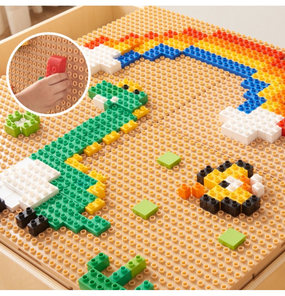 Pakuotės matmenys | 4 paczki - Stół: 118 x 90,5 x 29 (cm) / Akcesoria: 32 x 21,5 x 31 (cm) / Nakładki na klocki: 39,6 x 39,6 x 12 (cm) / Klocki: 35 x 26 x 30 (cm) |